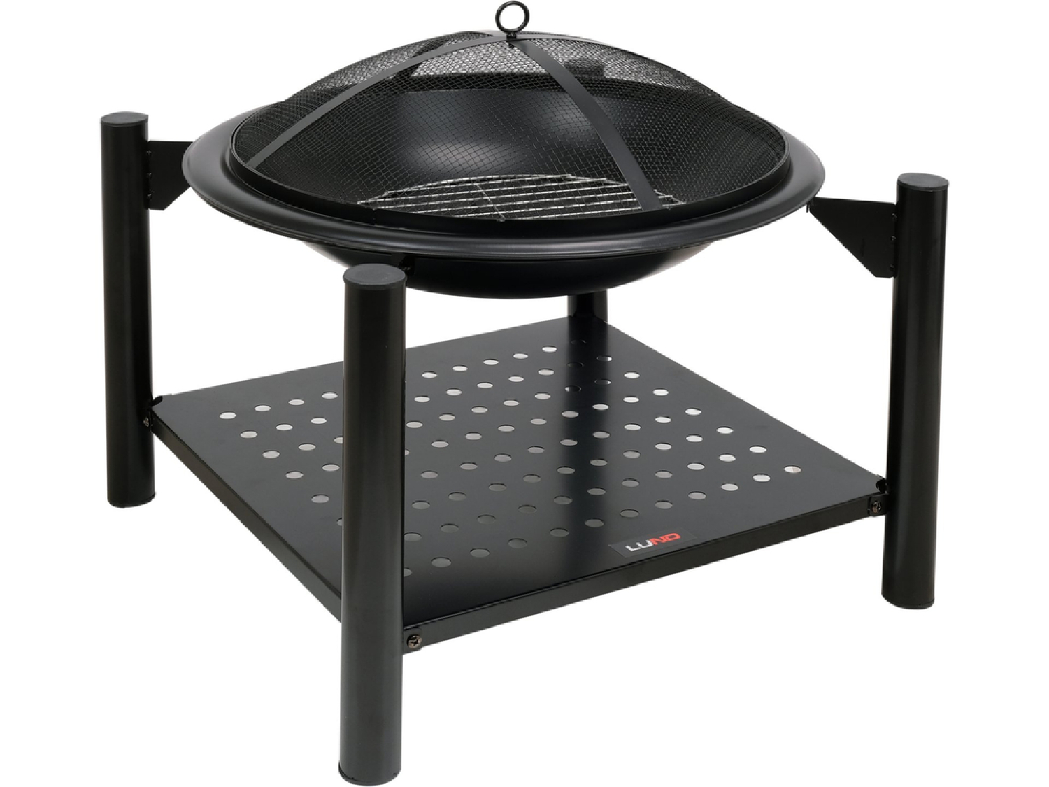 Suurepärane LUND brändi metallne tulease, mille mõõtmed on 58x58cmx55cm, on loodud soojuse ja valguse allikaks ning kaunistuseks teie aeda. Alusriiul pakub mugavat kohta puude hoiustamiseks. Võrksüsi katab takistab sädemete põgenemist lahtisest tule all.