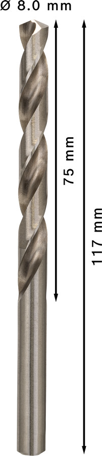 HSS-G urbji metālam 8.0mm, 5gab., Urbjmašīnām/skrūvgriežiem PRO METAL HSS-G STANDARTA SPIRĀLVEIDA URBJA GARUMS, 2608595072, BOSCH