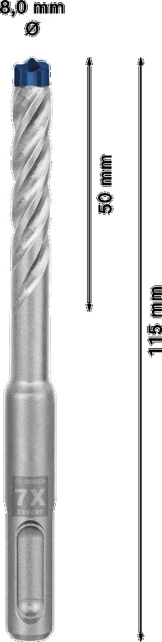 Triecienurbis SDS plus-7X 8x50x115mm, 1 gab., Perforatora urbjiem EXPERT SDS PLUS-7X TRIECIENURBIS PERFORATORIEM, 2608900087, BOSCH