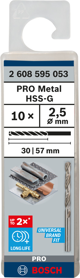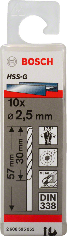 HSS-G urbji metālam 2,5mm, 10gab., Urbjmašīnām/skrūvgriežiem PRO METAL HSS-G STANDARTA SPIRĀLVEIDA URBJA GARUMS, 2608595053, BOSCH