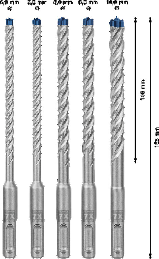 SDS-plus-7X 5 urbj.kompl Robust Line 6/6/8/8/10 mm, Perforatora urbjiem EXPERT SDS PLUS-7X TRIECIENURBJU PERFORATORIEM KOMPLEKTS, 2608900198, BOSCH