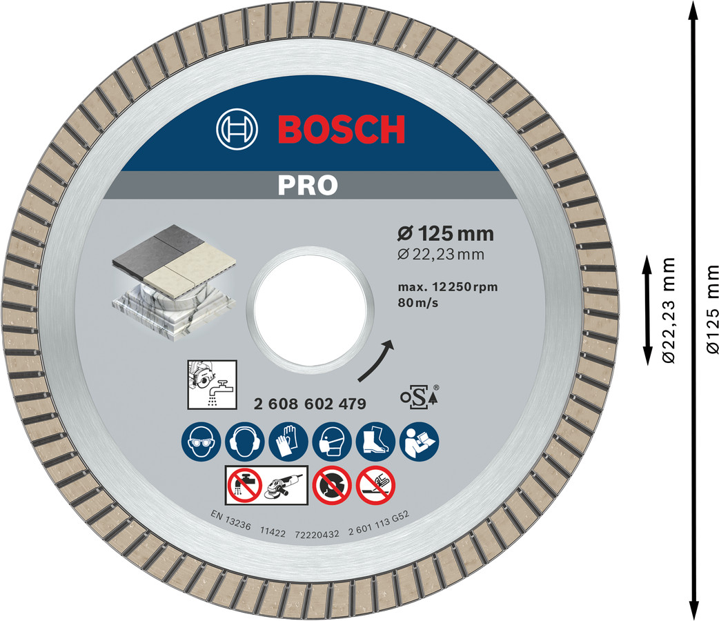 Dimanta grieš. disks *** Flīzēm 125mm;22,23mm, Mazām leņķa slīpmašīnām, marmora zāģiem PRO CERAMIC DIMANTA GRIEZĒJDISKS, 2608602479, BOSCH