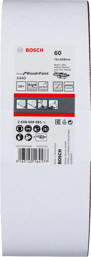 Slīplente kokam 75x533,K 60, 10 gab., Lentes slīpmašīnām PRO X440 SLĪPLENTA, 2608606081 BOSCH