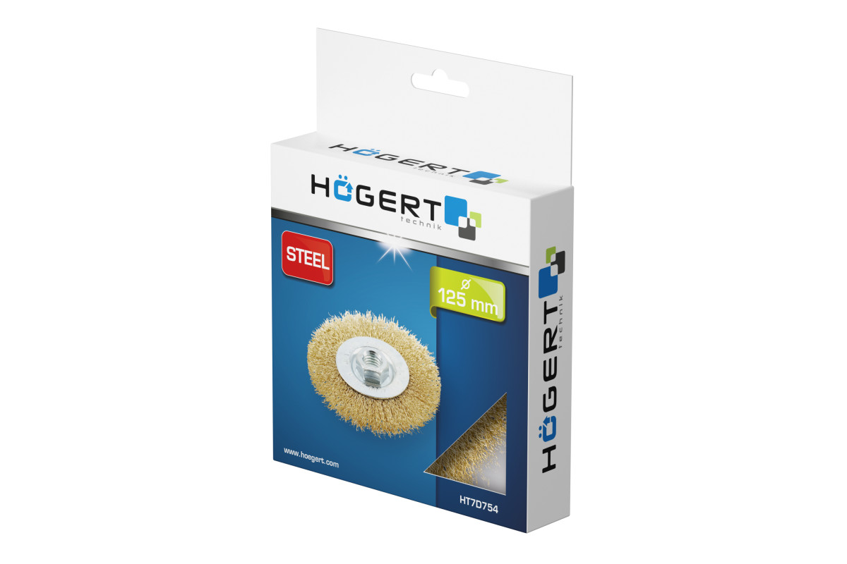 Tērauda abrazīvā birste 125mm, misiņa stieple, M14, HT7D754, HOGERT