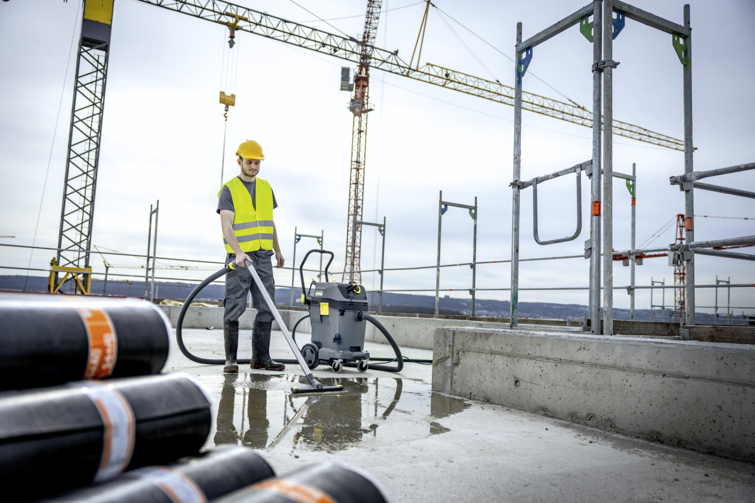KARCHER mudel 1.148-470.0 märg- ja kuivtolmuimeja veepumbaga on ideaalne lahendus ehituse ja tööstuse valdkonnas. See seade tagab kiire ja tõhusa suure veemahtude imemise, suudades töödelda üle 300 liitri musta vett minutis, sealhulgas kuni 20 mm suuruseid jämedaid mustusi. Standardne Geka ühendus tagab ühilduvuse laialdaselt kasutatava veesüsteemiga. Erilised filtrid kaitsevad turbina ja imemisepumba väikeste osakeste, kivide, lehtede ja ehitusmaterjalide imemise eest.