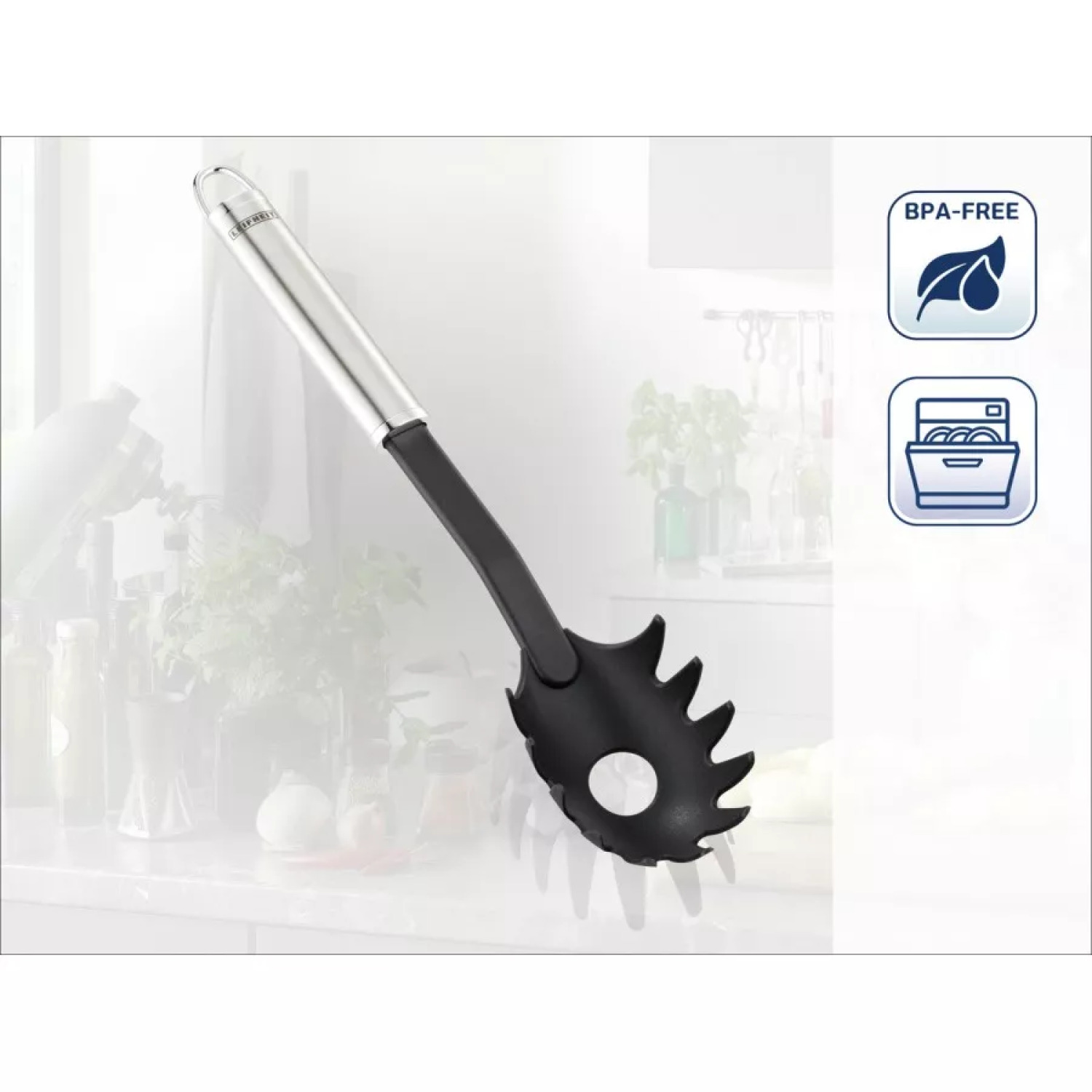 Leifheit Sterling spageti lusikas on ideaalne abimees toidu serveerimiseks. Elegantne disain ja kõrgekvaliteediline roostevaba teras muudavad selle köögiriista mitte ainult funktsionaalseks, vaid ka visuaalselt atraktiivseks.
