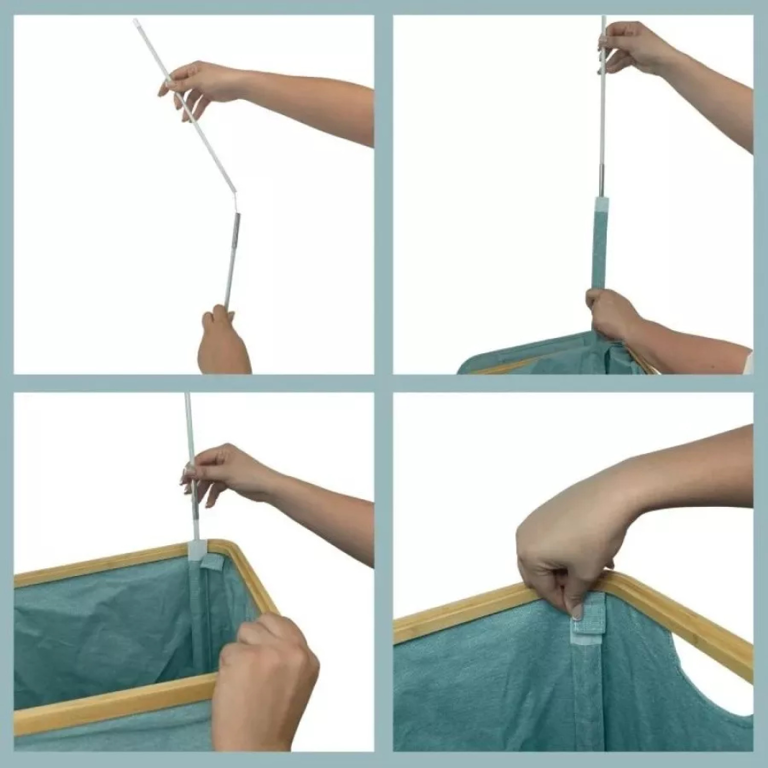 Kokkupandav kahe käepidemega pesukast. Valmistatud vastupidavast ja hingavast kangast.