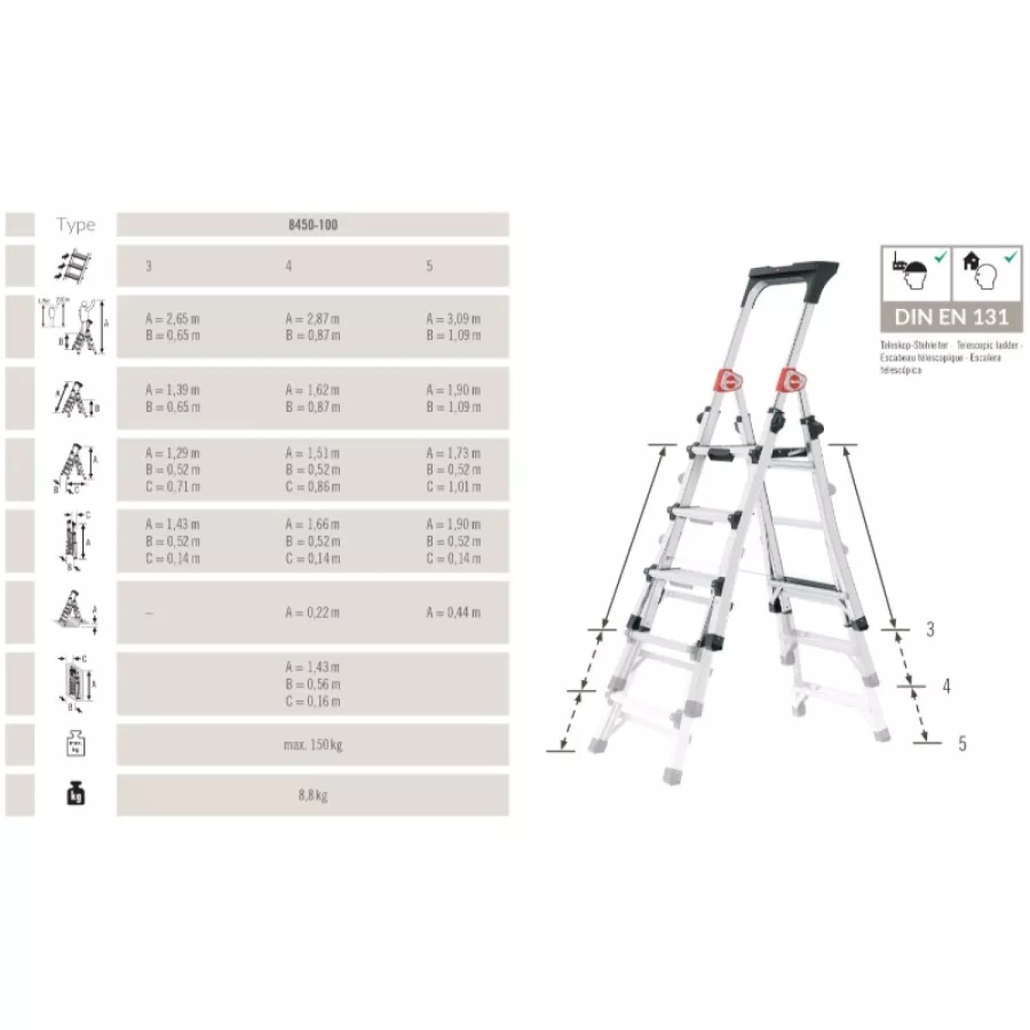 Hailo TopLine - reguleeritava töökõrgusega alumiiniumist teleskoopredel - 3, 4 või 5 astet ühes redelis
