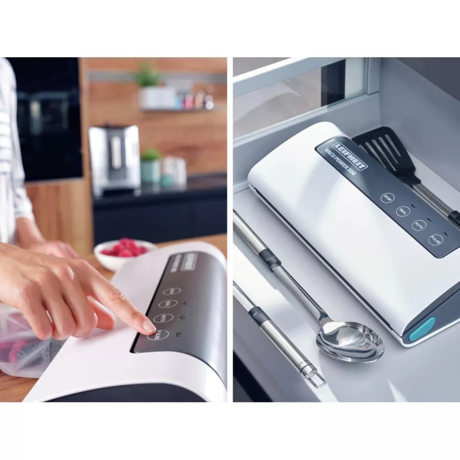 Vaakumseade VacuPower 300 + (10 vaakumkotti 20 * 30cm) - täisautomaatne elektriline vaakumseade toiduainete evakueerimiseks. Toit säilib vaakumis värskena kuni 8 korda kauem. 30 cm pikkune kuumsulav liimiriba.