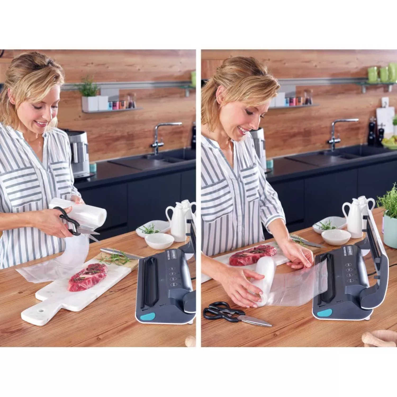 Ideaalne kala, liha, köögiviljade ja puuviljade jaoks. Vaakumis toit säilitab vitamiine ja mineraalaineid kauem. Kiirendab marineerimisprotsessi. Pehmeid marju ja puuvilju saab tolmuimejaga imeda, kasutades vaakumi stopp-nuppu.