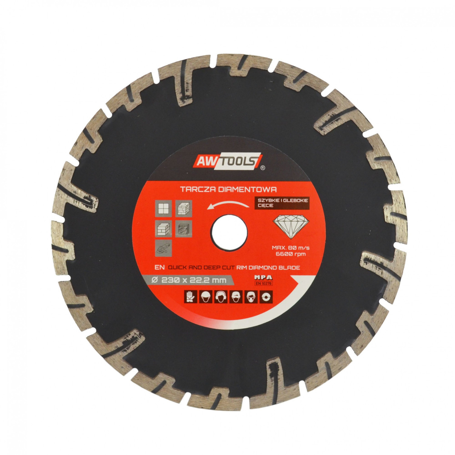 Segmentēta rāmja dziļgriezuma dimanta zāģa asmens 230 x 22.2mm, ātra un dziļa griešana, AW45404, AWTOOLS