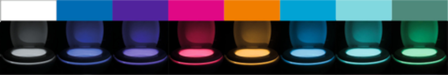 Kompaktne LED RGB valgustab tualettpotti seestpoolt, muutes värve sujuvalt. Samuti saate püsivalt seadistada ükskõik millise (saadaval 8 valgustusvärvi) värvi teie valikul.