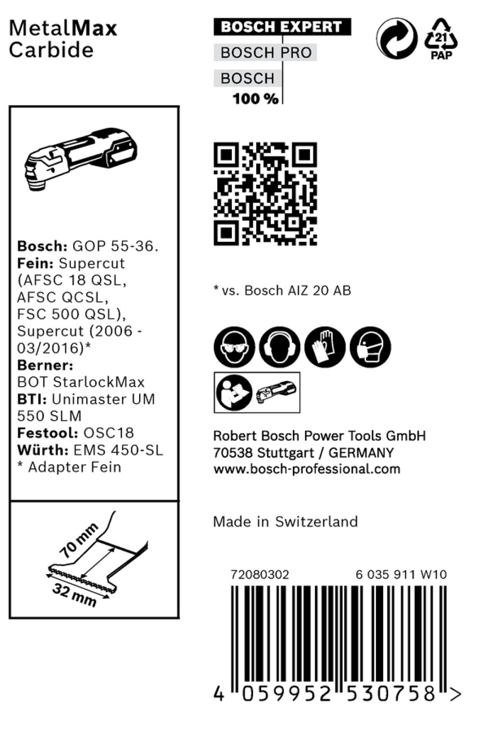 Svārstību daudzfunkcionālajiem darbarīkiem EXPERT MAII 32 AIT METALMAX GREMDZĀĢĒŠANAS ASMENS BOSCH 2608900023