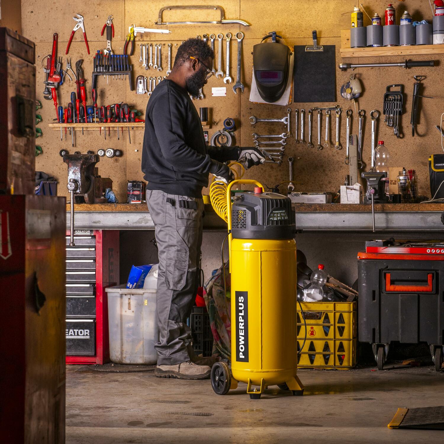 See õlivaba kaasaskantav Powerplus kompressor sobib ideaalselt sõiduki või jalgratta rehvide, õhkmadratsite ja korvpallide pumpamiseks. Samuti saab seda kasutada koos pneumaatiliste tööriistadega, nagu näiteks naelutaja/kleeppinktiga, lihvimismasin ja palju muud.
