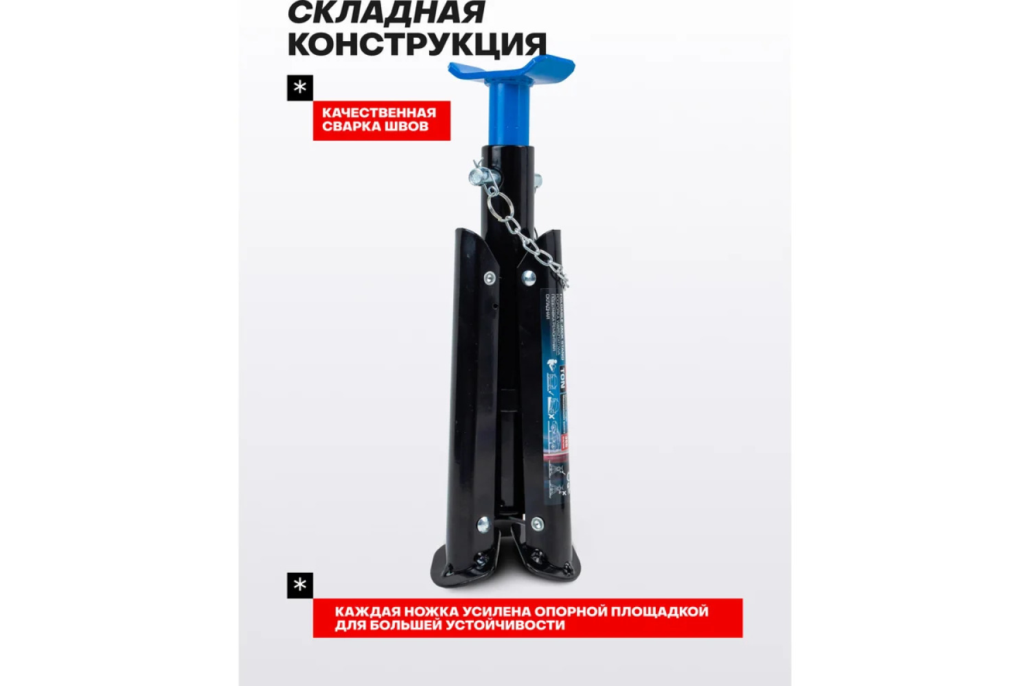 Komplekt sisaldab kahte turvalist toetuskohitust. Need võimaldavad samal ajal tõsta ja hoida auto mõlemat külge, pakkudes stabiilsust ja ohutust remonditööde käigus.