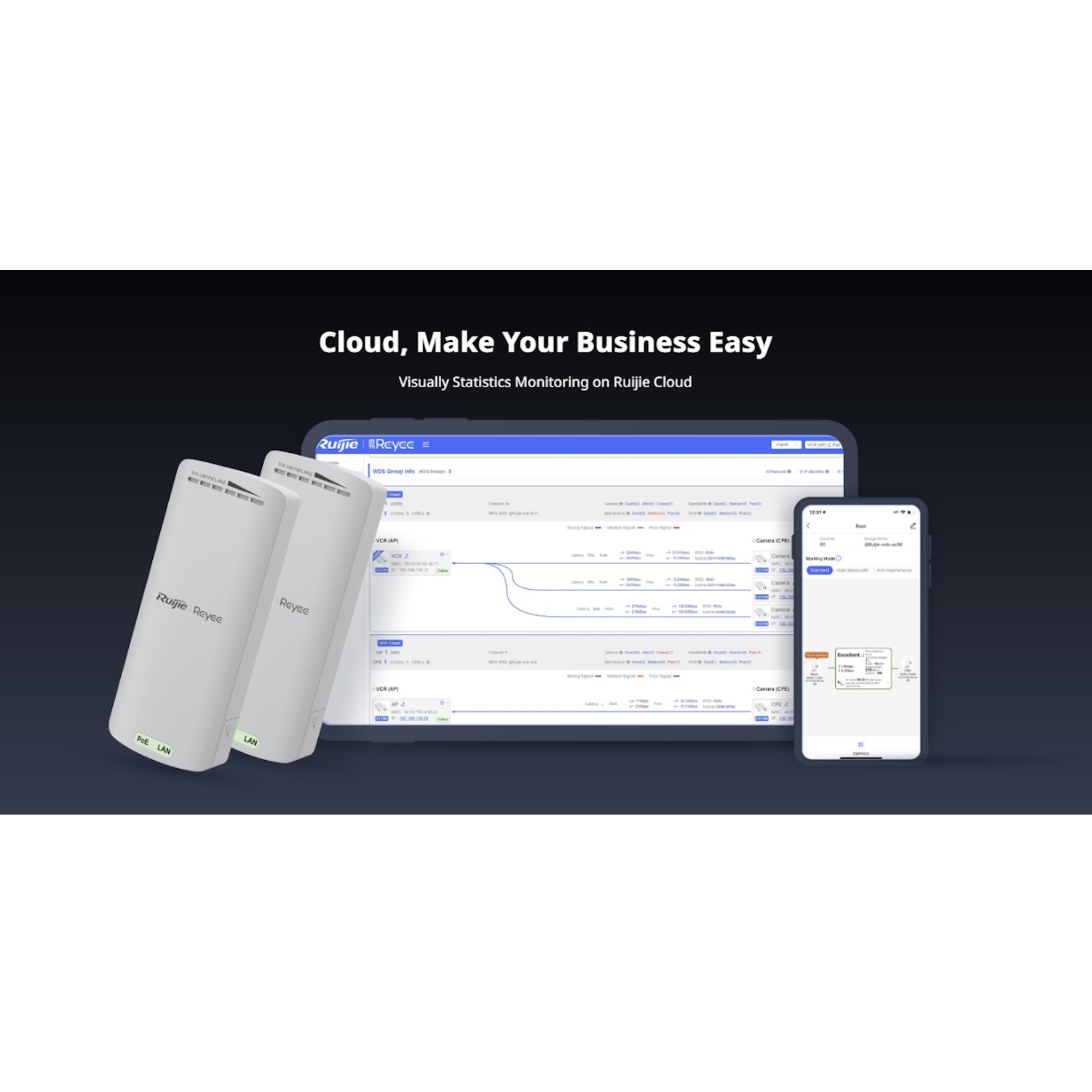 RG-EST100-E on loodud kiireks paigaldamiseks ja pika vahemaa traadita linkide loomiseks hoonete, kaamerate või kaugete võrgusõlmede vahel. See elimineerib kaevetööd või kiudoptiliste signaalide paigaldamise, vähendab paigalduskulusid ja pakub usaldusväärset, häirekindlat edastust 2.4 GHz.