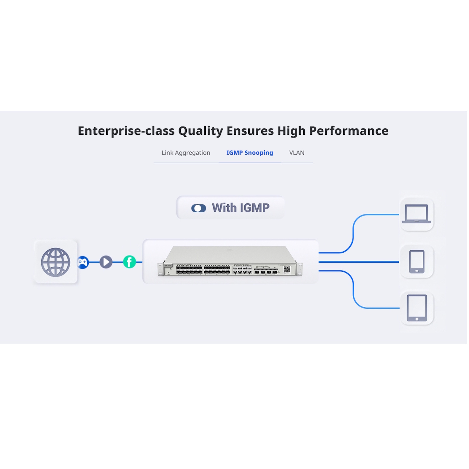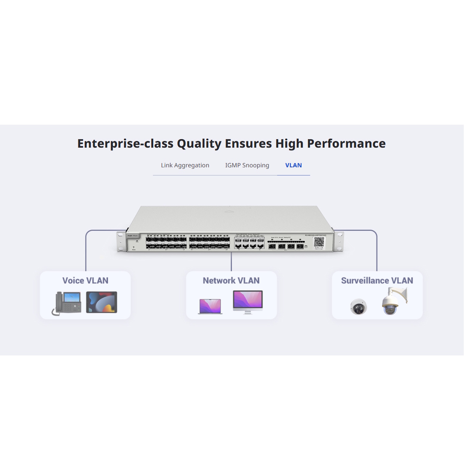 20 Gbps lülitamise võime, 6kV ülevoolukaitse ja Layer 2 haldamine teevad sellest lülitist eesmärgipärase väikeste ja keskmise suurusega ettevõtete võrkudele, mis vajavad kaugvaate, PoE toite ja intelligentset liikluse segmenteerimist.