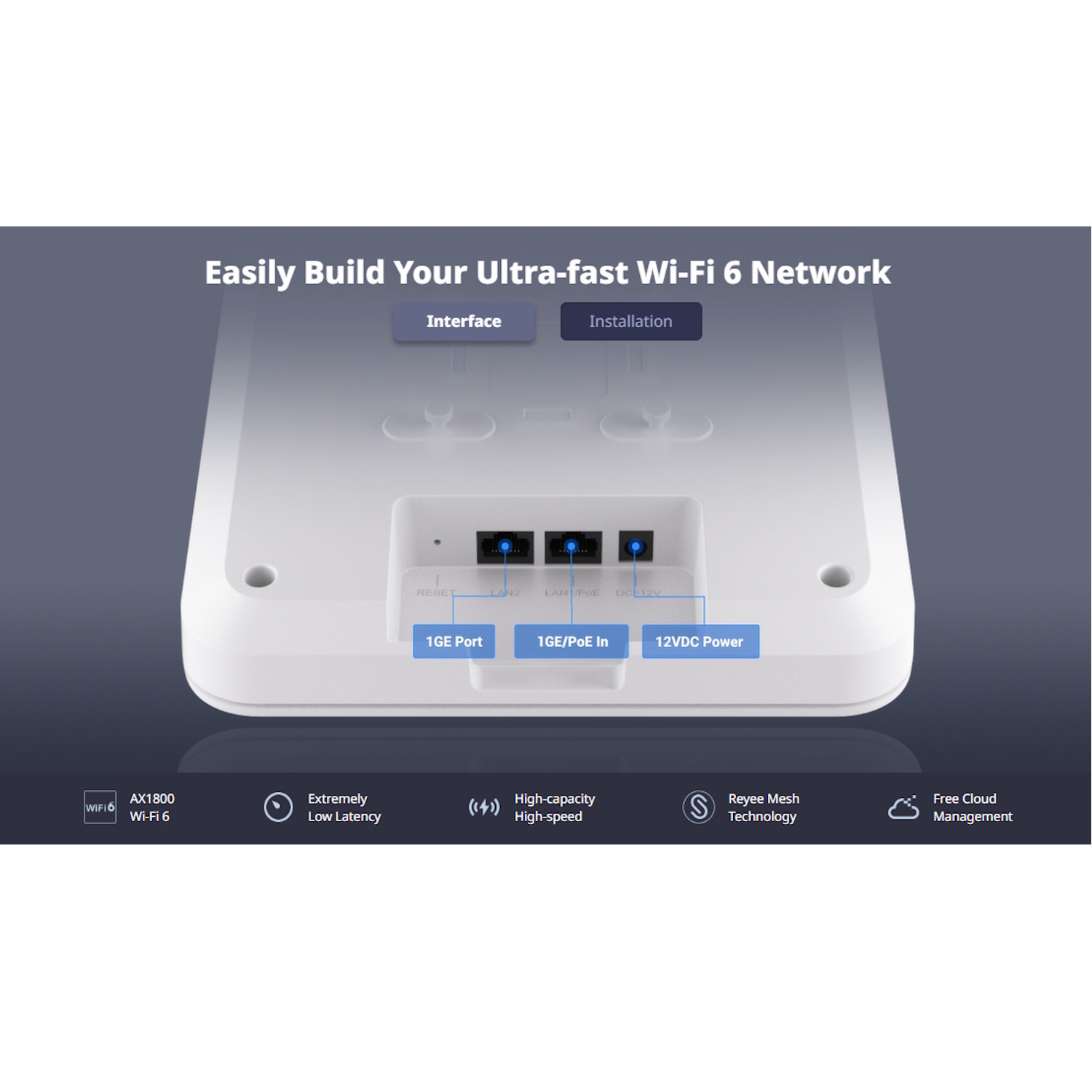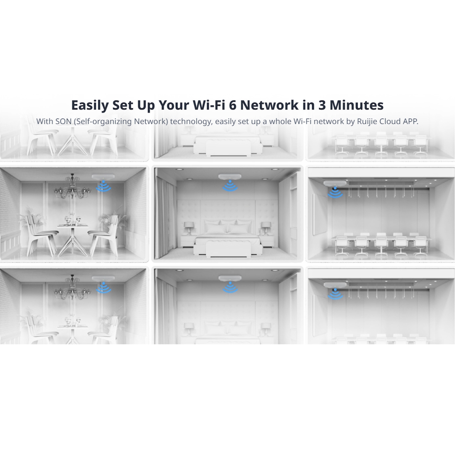 Mõeldud skaleeritavuseks ja pikaajalise väärtuse tagamiseks, integreerub see ligipääsupunkt hõlpsasti igasse Ruijie Cloud'i haldusesse infrastruktuuri, võimaldades nullkontseptsiooni, reaalajas analüütikat ja ülireliable Wi-Fi kogemusi.