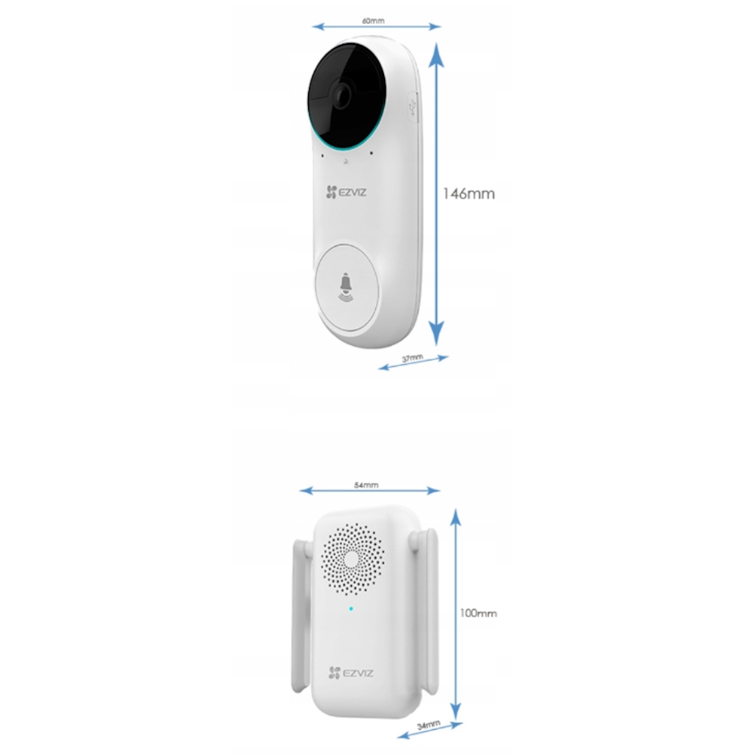 EZVIZ DB2C nutikas traadita HD 1080p videoväravakell aku ja helimooduli komplekt – Valge