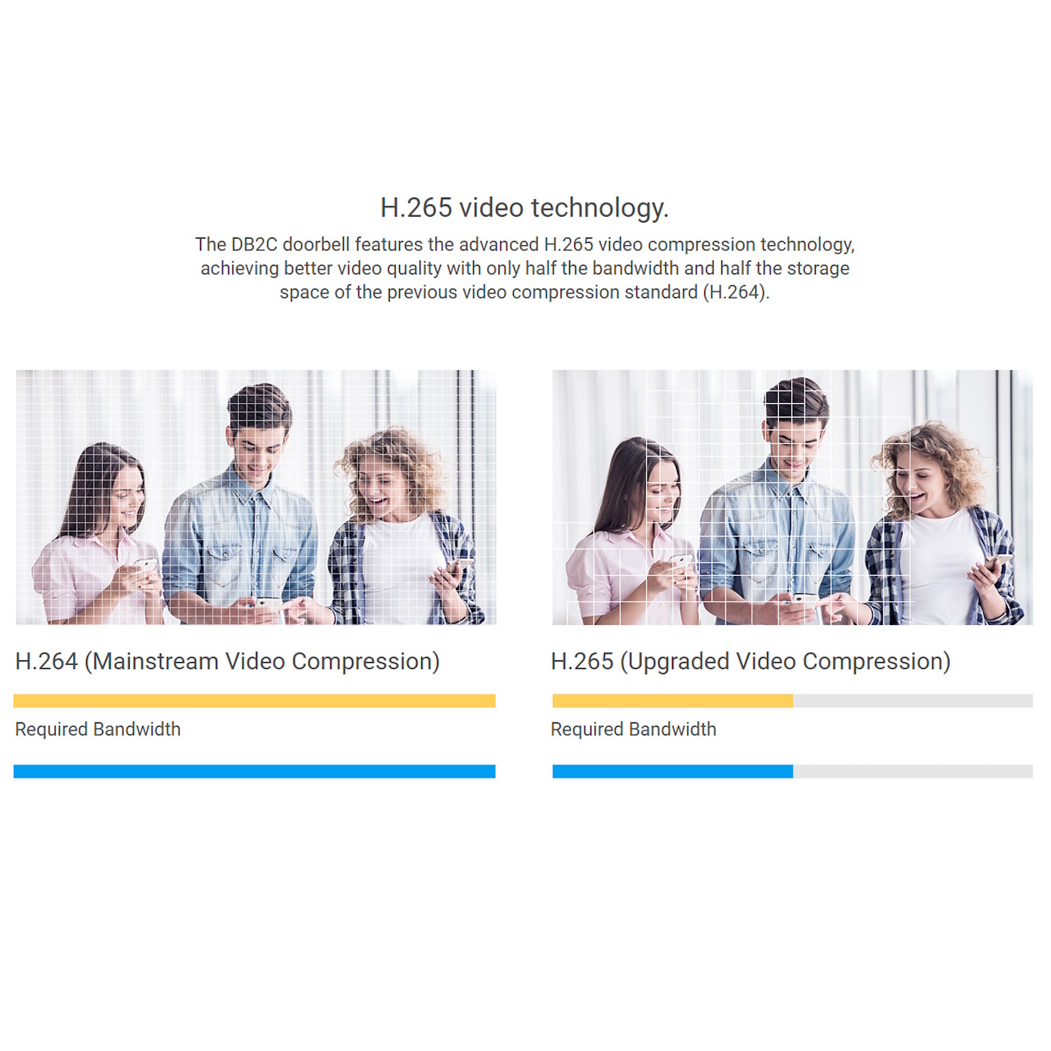 H.265 videokompressioonitehnoloogia – Efektiivselt vähendab ribalaiuse kasutust ja salvestusruumi, kvaliteeti ohverdamata.
