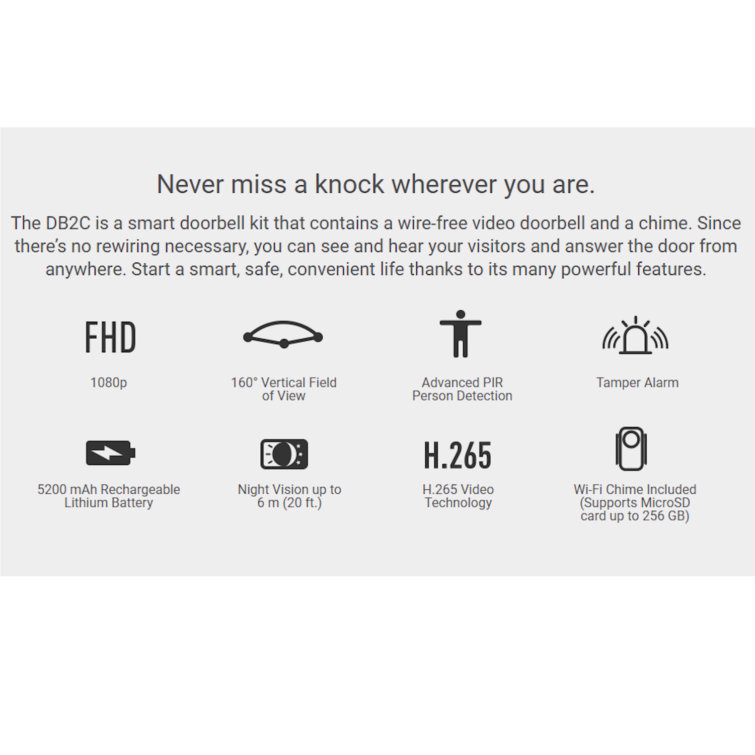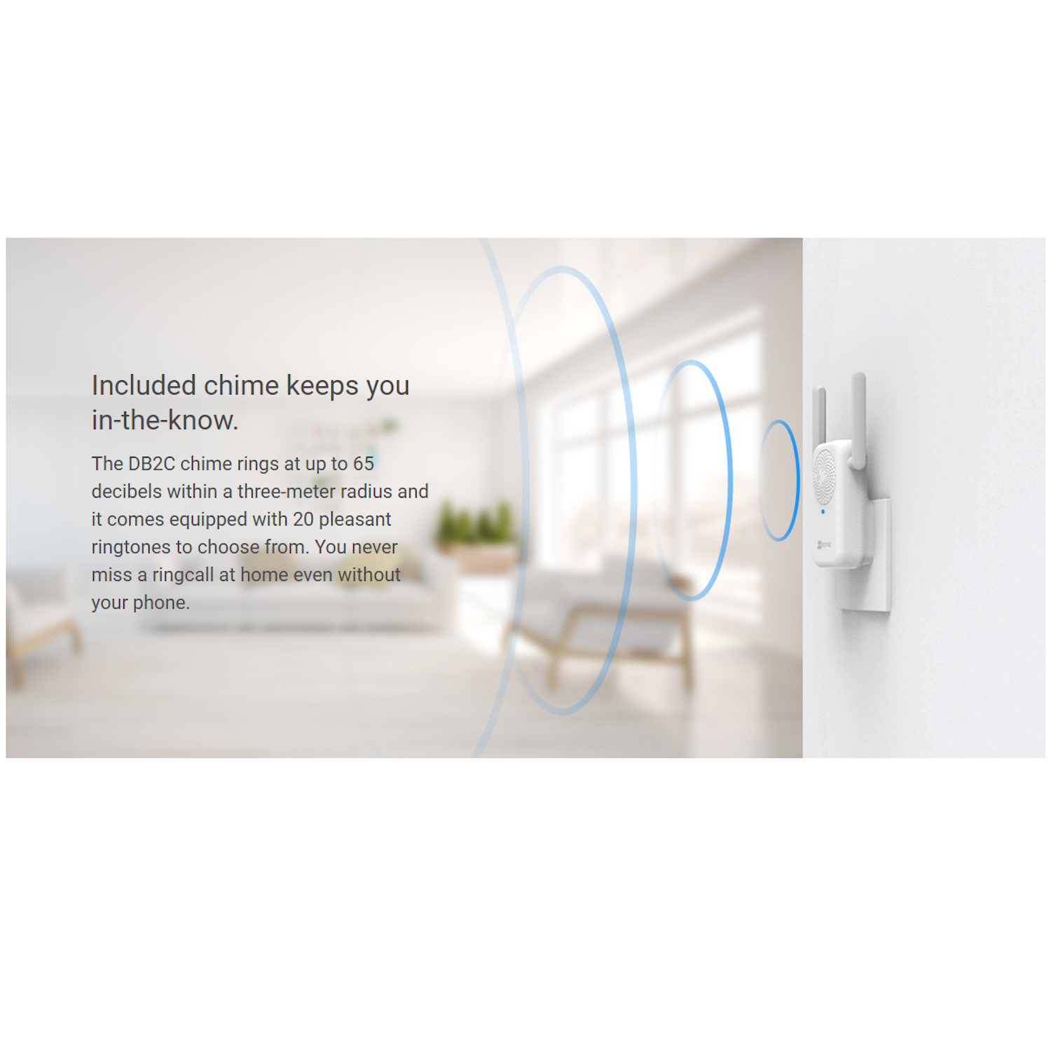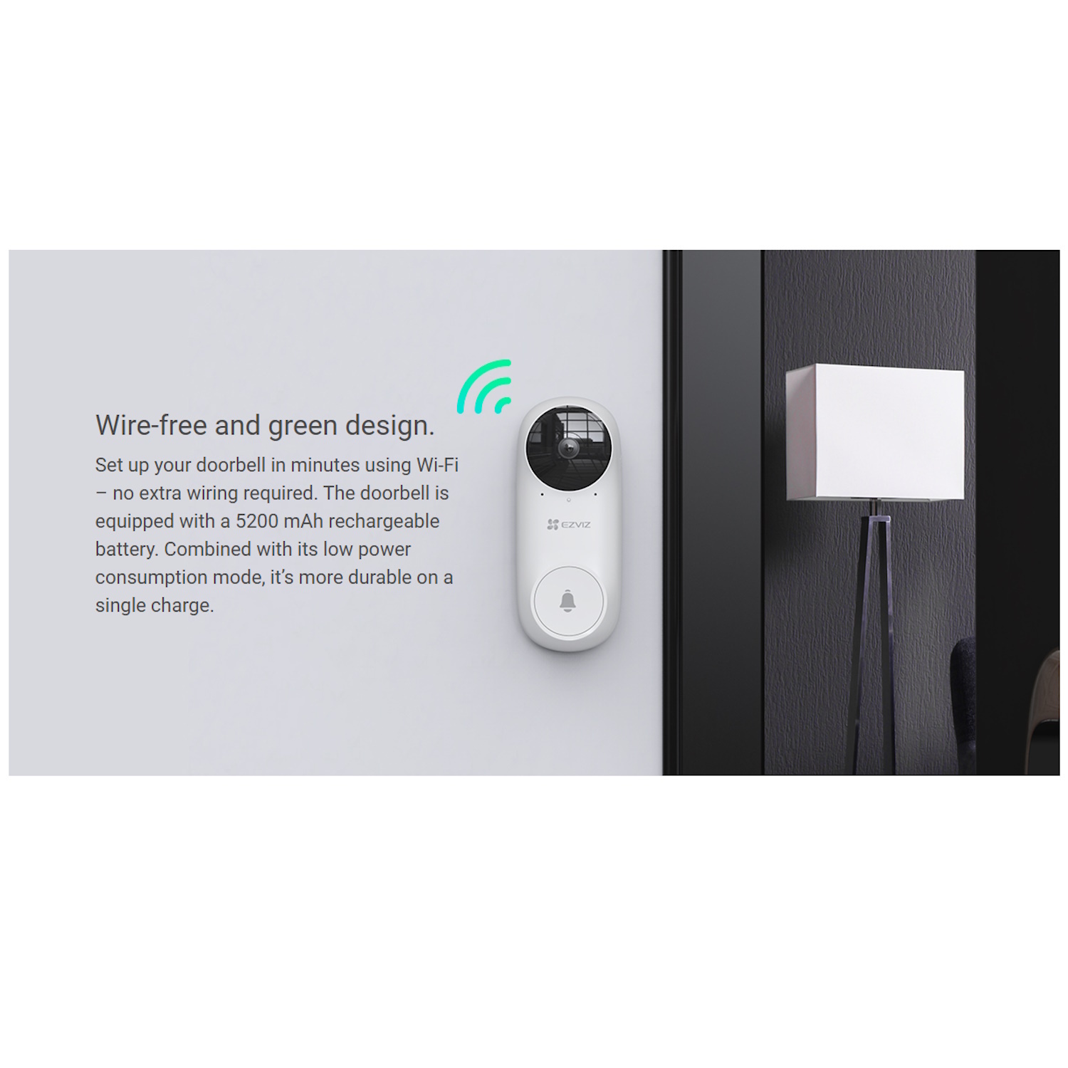 Wi-Fi kellukese võimalus mitme heliga – Kaasasolev kelluke pakub 20 meeldivat helitugevust, tagades, et kuuled külalisi igast kodu nurgast.