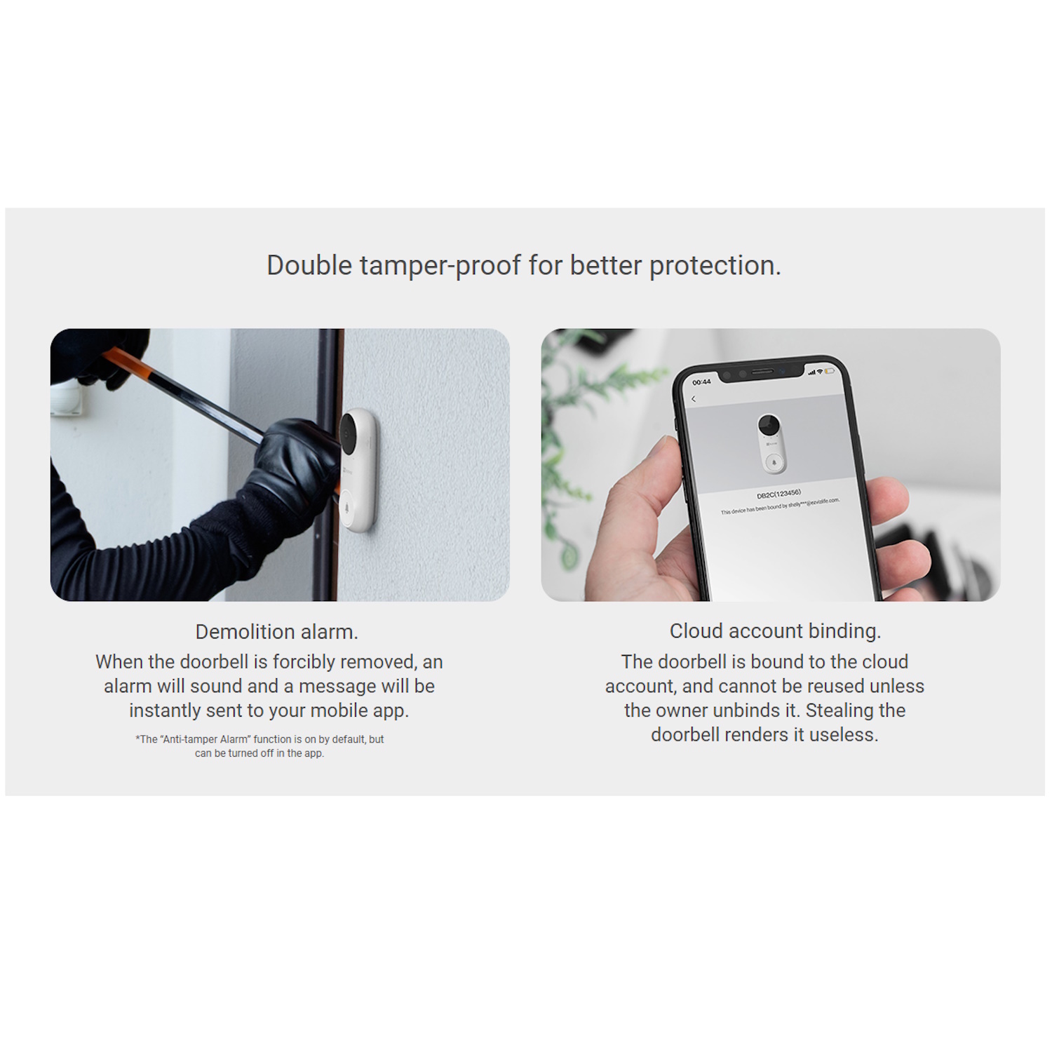 Kaitsealarm ja kohandatavad kellukese helid lisavad turvakihtide ja isikupära, hoides sind informeerituna ja kontrolli all.
