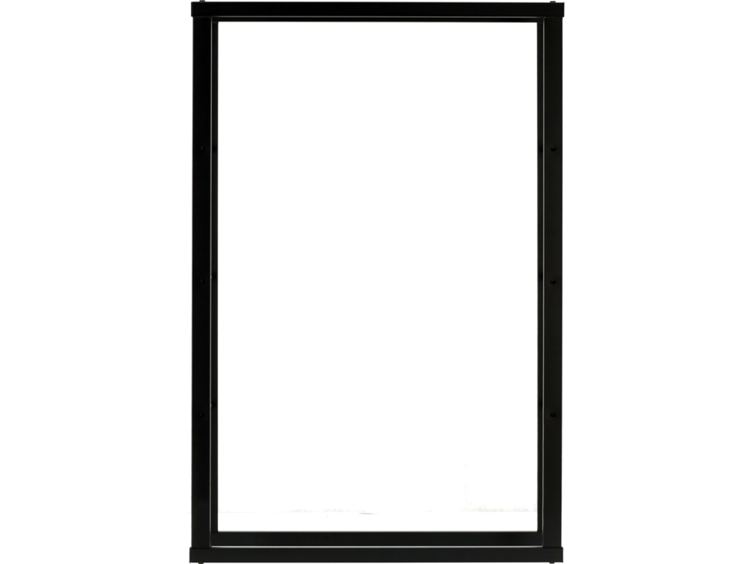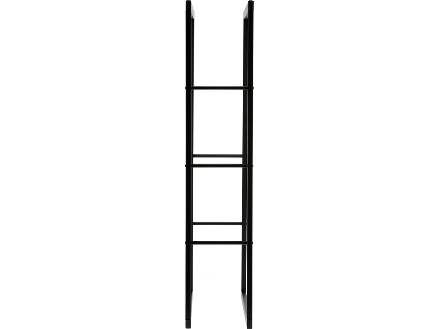 Konstruktsioon on valmistatud pulbervärvitud terasest mati musta viimistlusega, mis kaitseb niiskuse, kriimustuste ja korrosiooni eest. Avatud külgede osad lasevad õhul vabalt liikuda, tagades küttepuude loomuliku kuivamise ja vältides niiskumist.