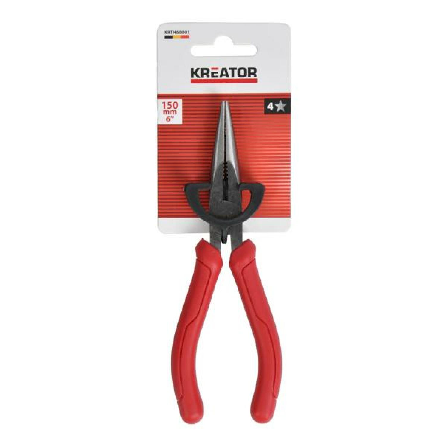 Pikad ninatangid 150mm KREATOR KRTH60001 on ideaalne tööriistade komplekt hoidmiseks, lõikamiseks, isoleerimise eemaldamiseks ja traadi pressimiseks, mille diameeter on kuni 30mm. Need on valmistatud tugevast poleeritud süsinikterasest ja nende pikkus on 160mm. Pehmed kummist käepidemed tagavad kindla, libisemisvastase haarde ja mugava kasutamise.