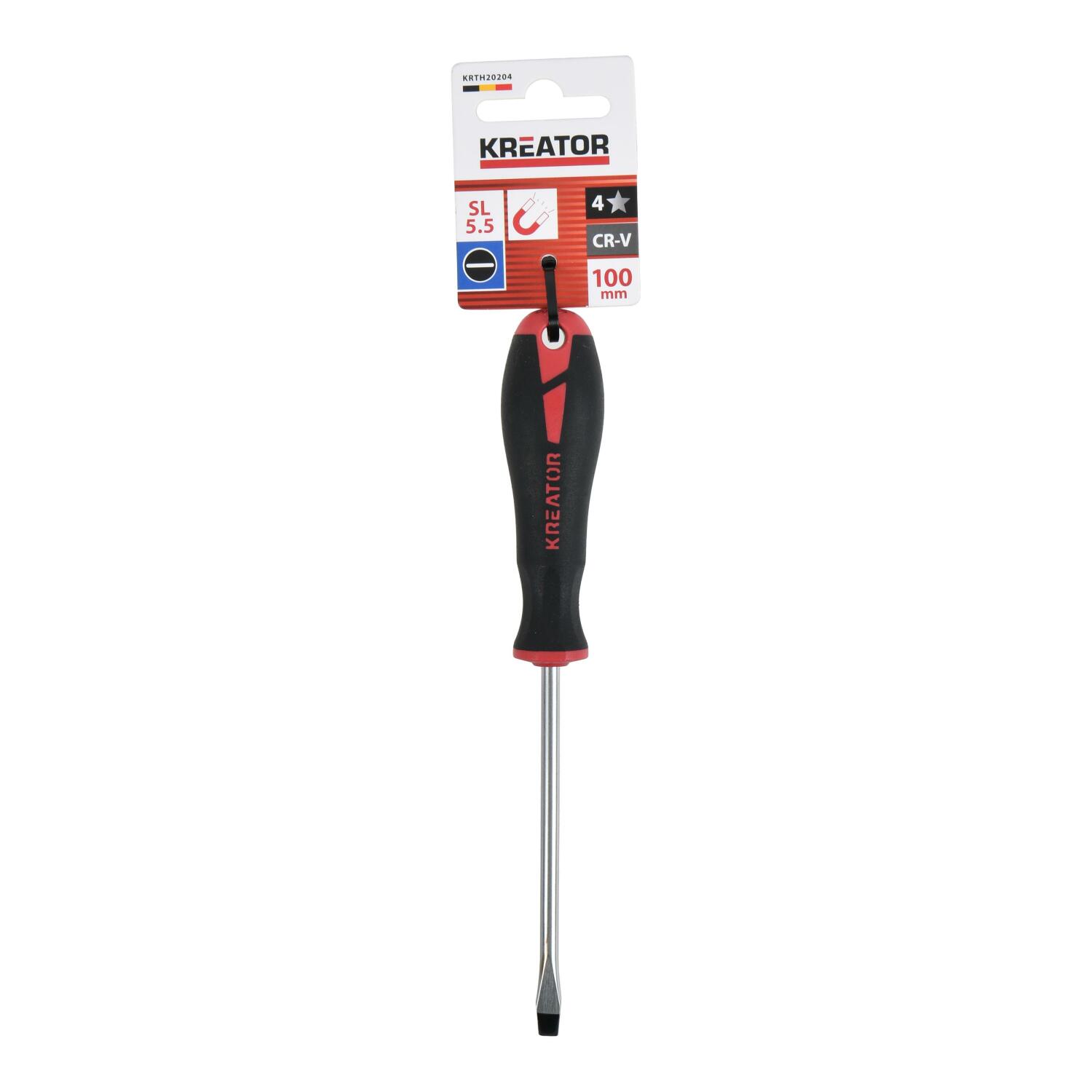 KREATOR KRTH20204 on lamekruvikeeraja, mille varre pikkus on 100 mm ja pea suurus 5.5. Sellel kruvikeerajal on magnetiline ots, mis kiirendab kruvide keermestamist. Pehme libisemisvastane käepide tagab kindla haarde ning käepide on varustatud integreeritud riputusauguga lihtsaks hoiustamiseks.