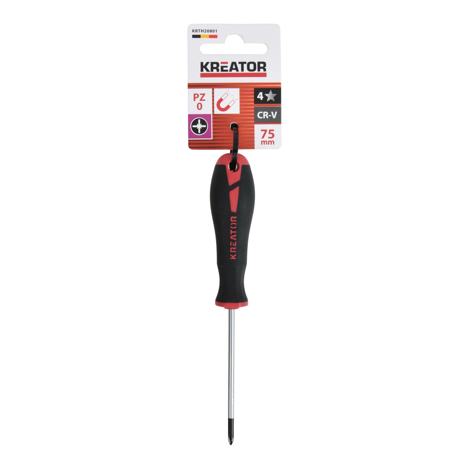 KREATOR KRTH20801 PZ0 kruvikeeraja, mille pikkus on 75 mm, sobib ideaalselt kruvide keeramiseks. Selle magnetotsik kiirendab kruvide keeramist. Pehme ja libisemisvastane käepide tagab kindla haarde ning käepideme küljes on integreeritud riputusaas, mis muudab ladustamise mugavaks.