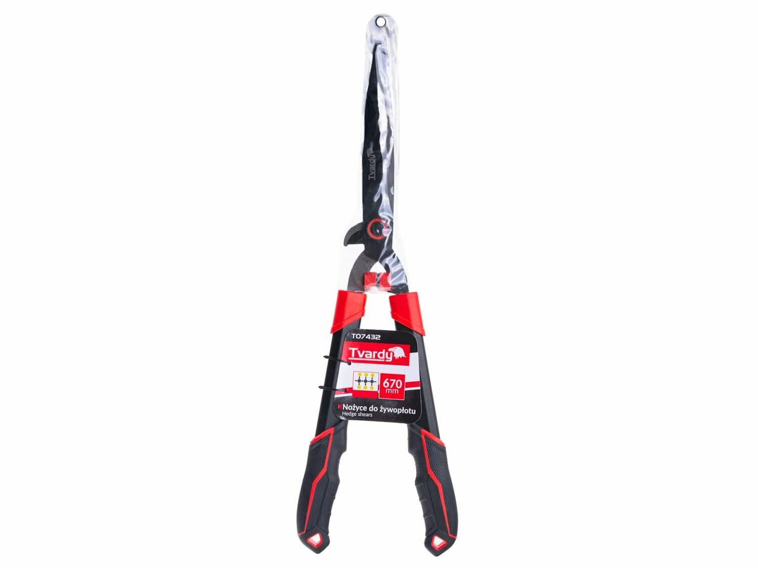 Hekikäärid lainelise teraga 670mm PTFE Tvardy T07432, 65Mn teras, 30° nurk, must ja punane