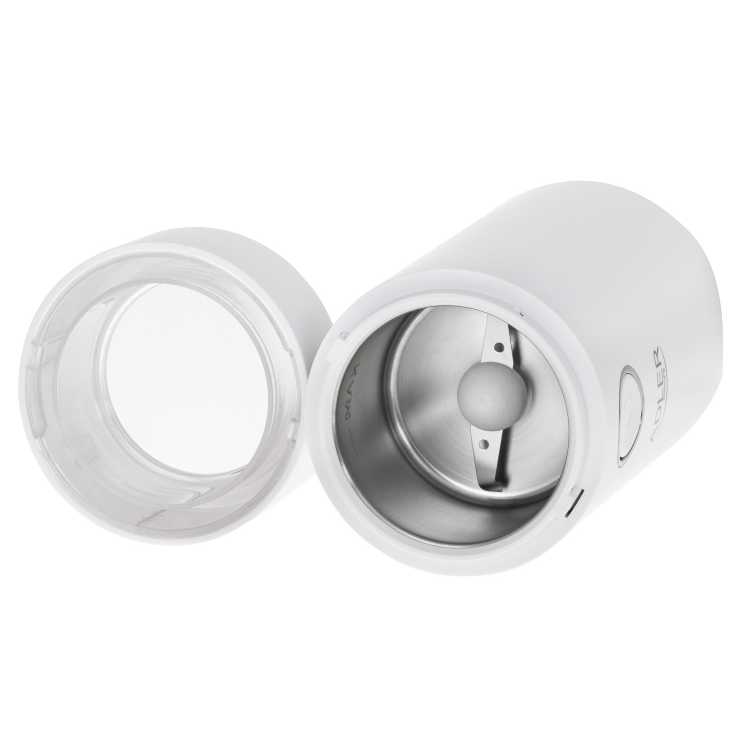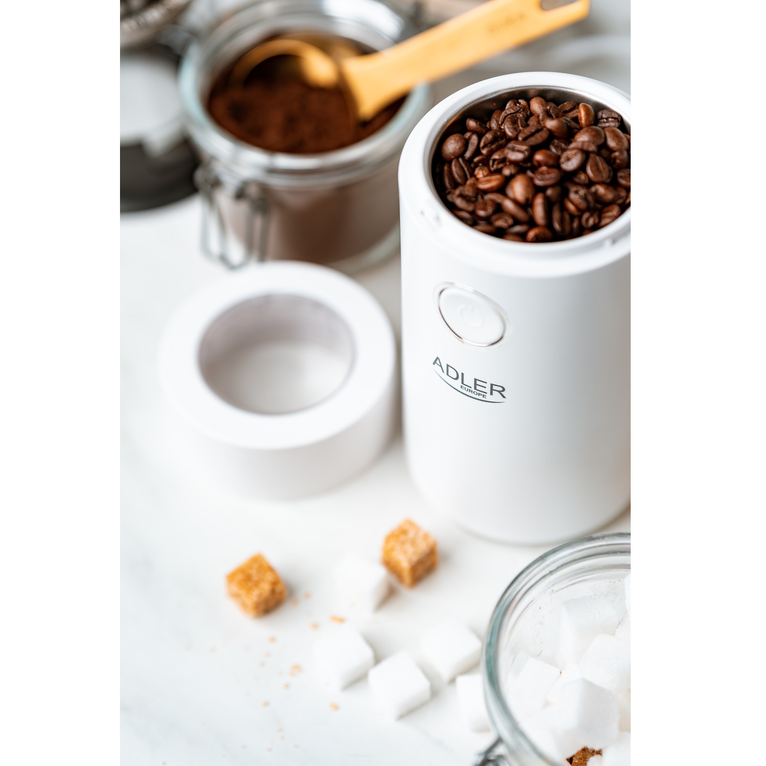 Adler AD4446ws on 150W elektriline kohviveski 75 g mahutavusega jahvatusanumaga, mis sobib igapäevaseks värskelt jahvatatud kohvi valmistamiseks kodus. Valge korpus annab seadmele puhta ja heleda välimuse, mis sobib eriti hästi kaasaegsesse või skandinaavialikku kööki. Ühe nupuga juhitav töörežiim muudab jahvatamise kiireks ja lihtsaks, võimaldades valida jahvatusastet tööaja järgi.