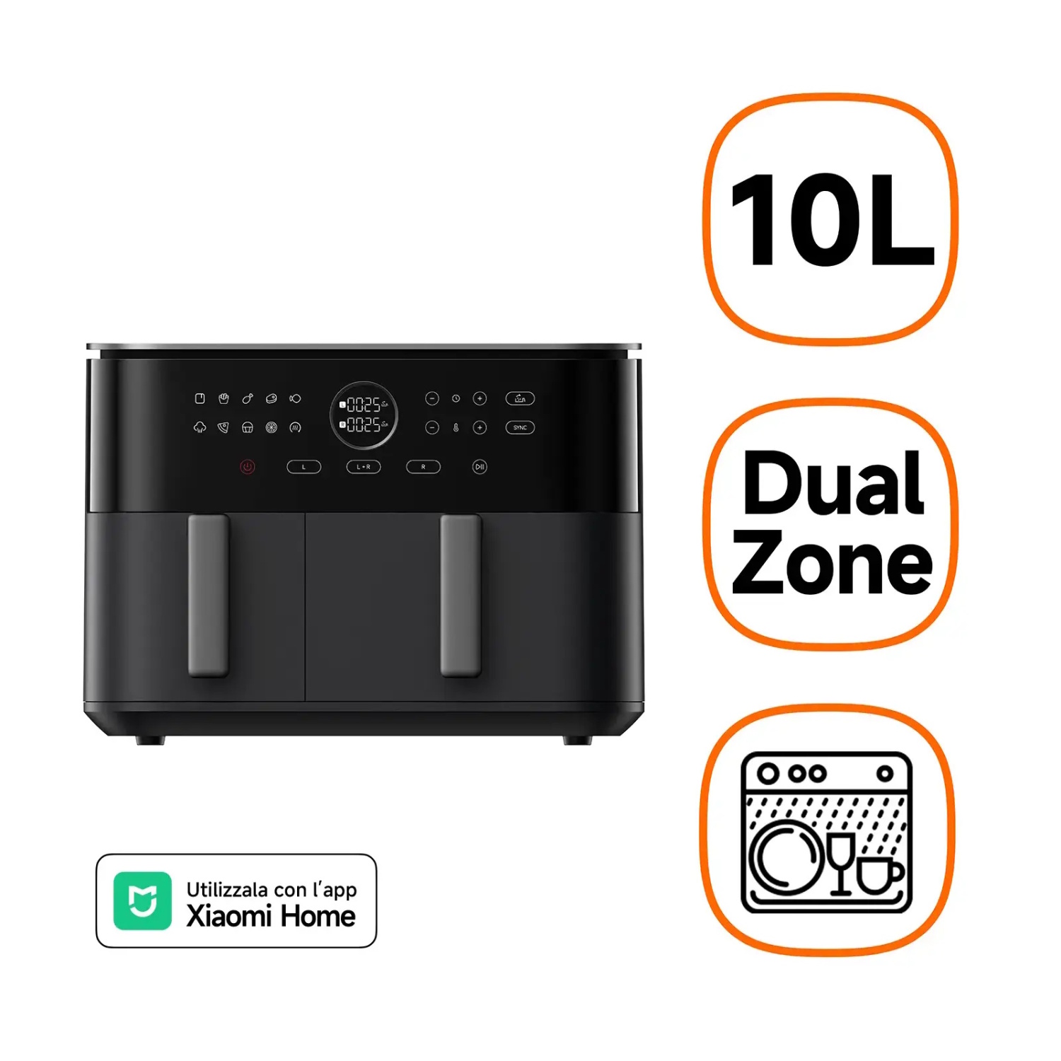 Xiaomi Dual Zone 10 L on võimas ja suure mahutavusega elektriline õhufritüür, millel on kaks täiesti iseseisvat küpsetustsooni, võimaldades valmistada kahte erinevat toitu samaaegselt eraldi režiimidega. 2700 W koguvõimsus, 3D konvektsioonitehnoloogia ja 10 L kogumaht tagavad kiire kuumenemise, ühtlase kuuma õhu ringluse ja tervislikuma toiduvalmistamise minimaalse õlikogusega. Xiaomi Home rakendusega integreerituna toetab see kaugjuhtimist, automaatseid programme, retseptide jälgimist ning mõlema tsooni sünkroniseeritud valmimist parima tulemuse saavutamiseks.