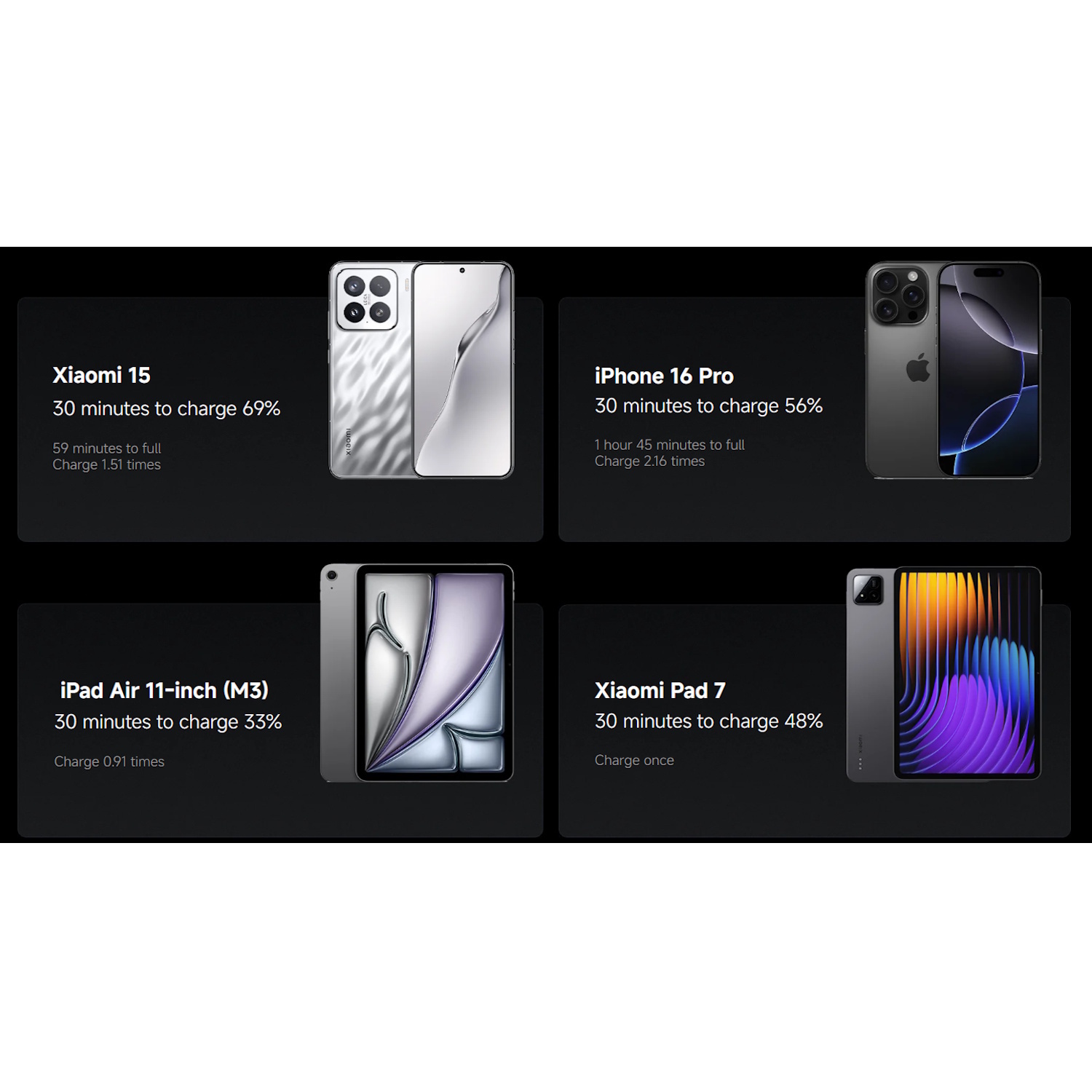 Kompaktne suurus koos suure võimsusega teeb sellest akupangast ideaalse kaaslase. Sisseehitatud kaabel on mugav ja 67 W laadimisvõimsus muudab selle väga mitmekülgseks.