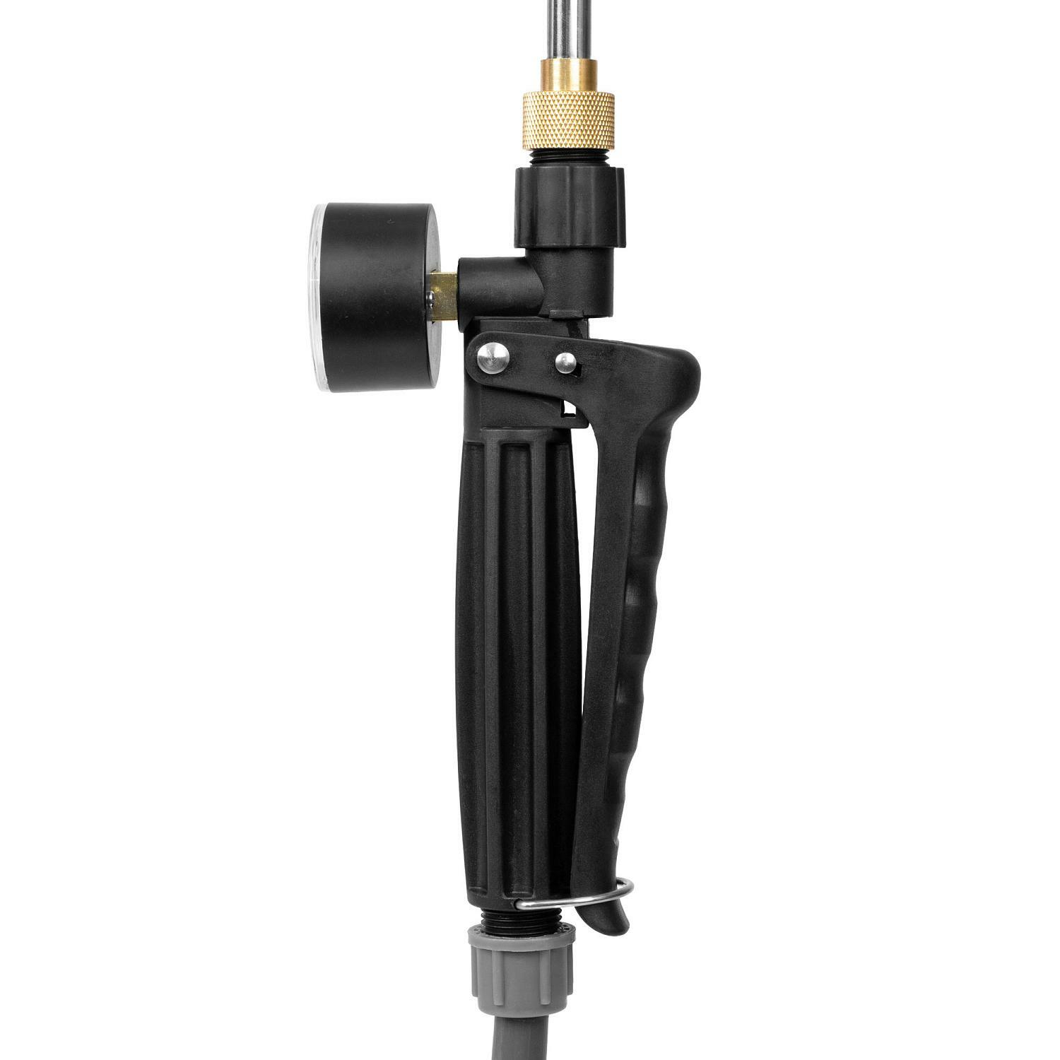 Mugav suur rõhu regulaator võimaldab seadme käivitamist ja rõhu reguleerimist vahemikus 1,5 kuni 5 baari, samal ajal kui pihustusulatus võib ulatuda kuni 8 meetrini. Kõrge jõudlusega pump