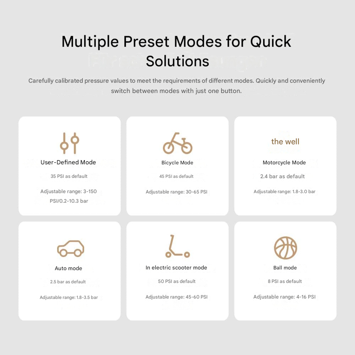Xiaomi Portable Electric Air Compressor 2 Pro on võimas ja kompaktne juhtmevaba õhukompressor digitaalse rõhunäidiku ja mahuka 2500 mAh akuga. See tagab kiire, täpse ja automaatse täitmise igas olukorras — kodus, teel või hädaolukorras. Ideaalne lahendus autodele, jalgratastele ja spordivarustusele.