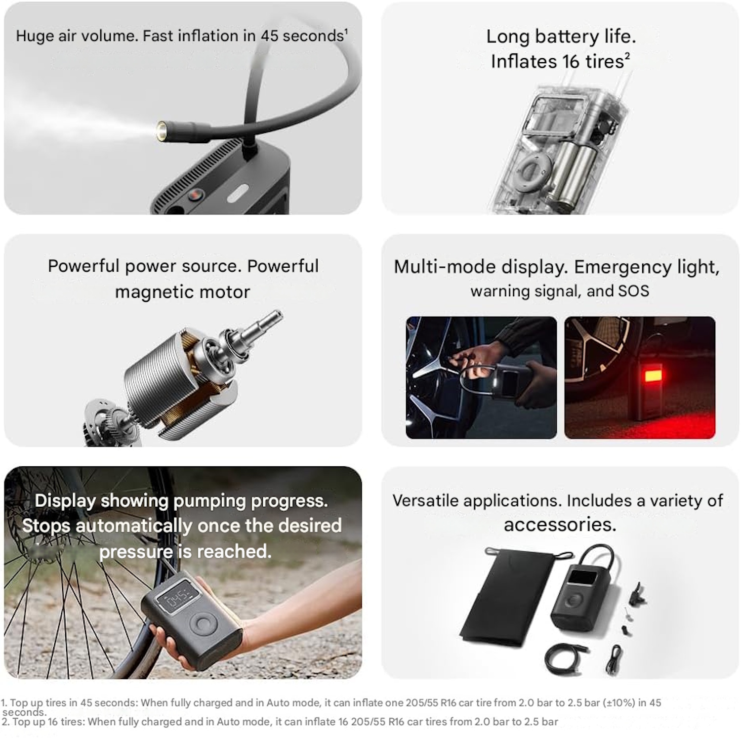 See Xiaomi kompressor paistab silma oma võimsuse, täpsuse ja liikuvuse poolest. Juhtmevaba töö, digitaalne ekraan ja nutikas automaatika teevad selle märgatavalt mugavamaks ja ohutumaks kui traditsioonilised lahendused. See on usaldusväärne seade kõigile, kes hindavad kiirust, mugavust ja Xiaomi kvaliteeti.