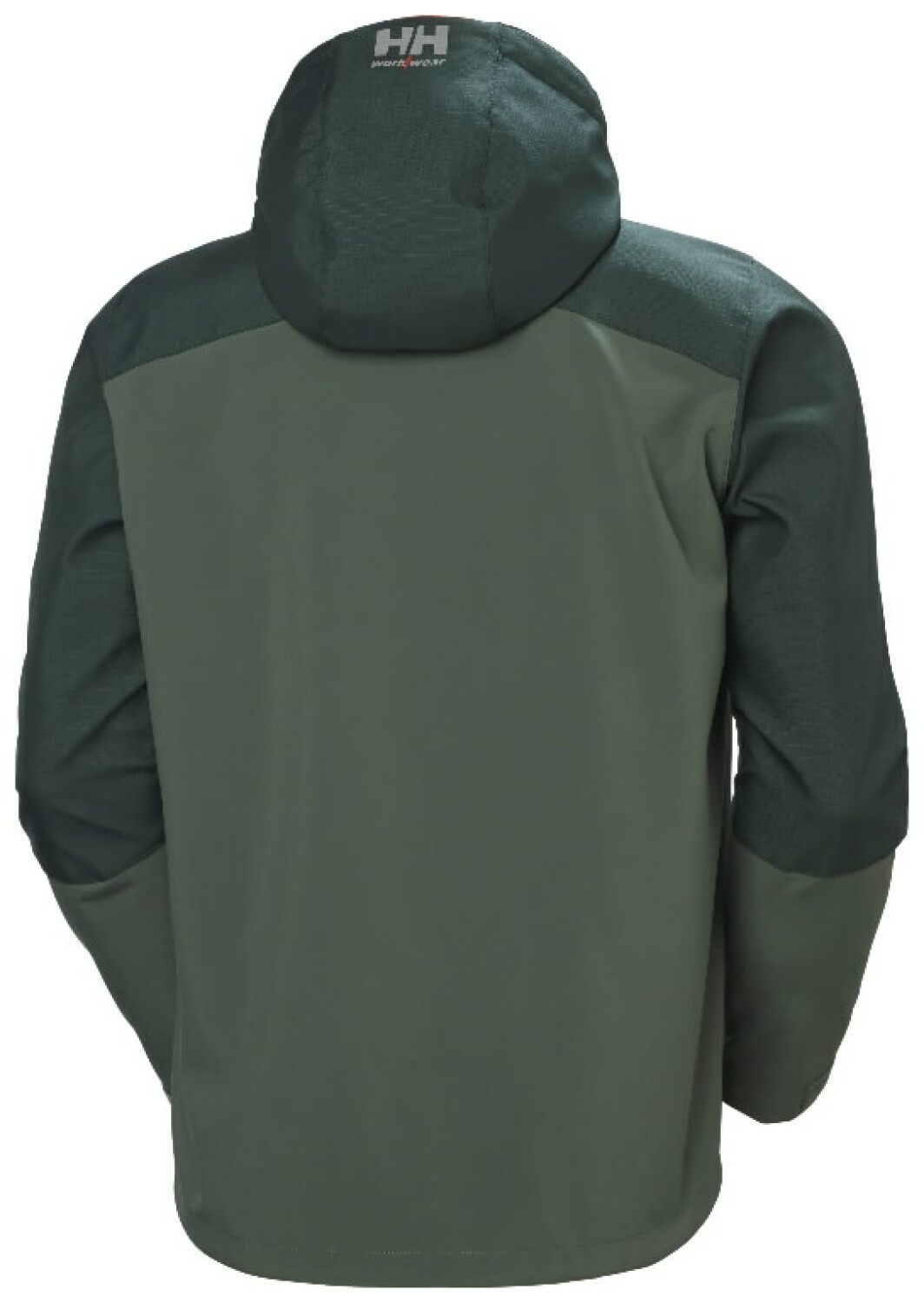 74290_474-L Softshell jakk Oxford, kapuutsiga, roheline/tumedalt roheline, L, Helly Hansen, 74290_474-L, 100% polüamiid - 385 g/m², 100% polüester - 325 g/m²