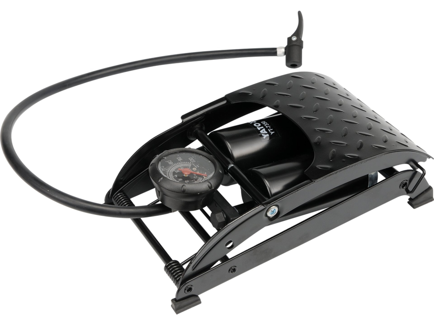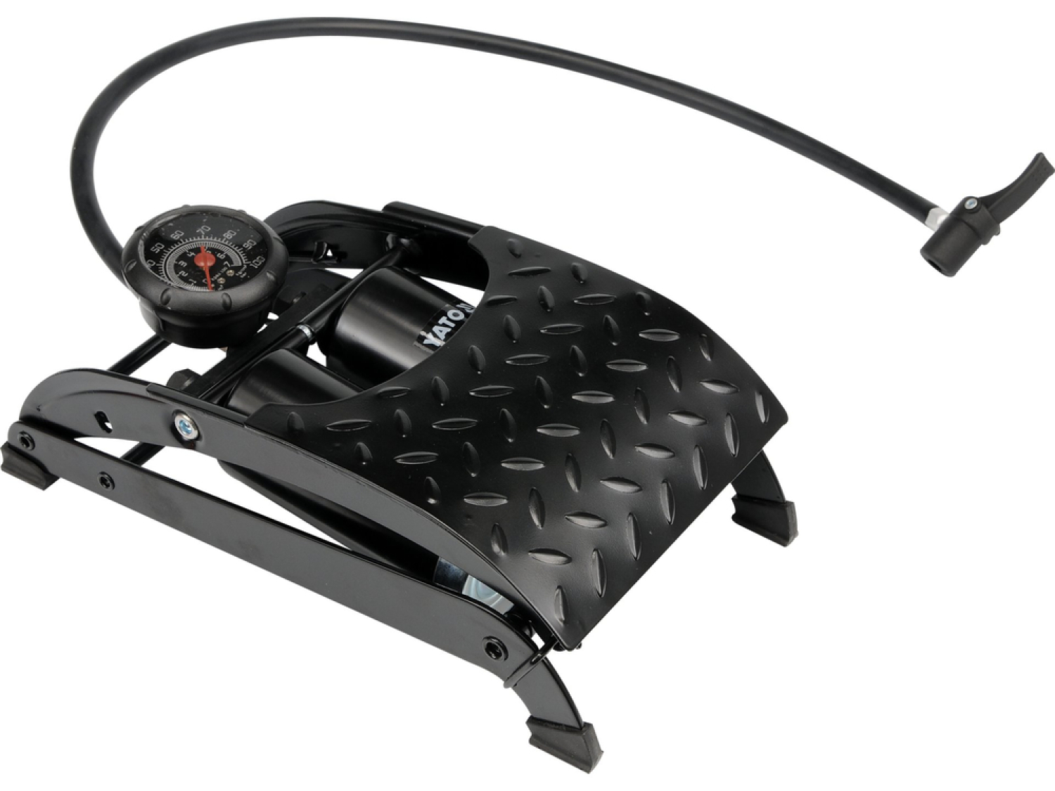 YATO YT-7350 on vastupidav ja mugav jalgpump, mis on varustatud manomeetriga ja sobib erinevate objektide, sealhulgas pallide ja madratsite, täitmiseks. Sellel on kvaliteetne pressitud ja lakitud terasleht, mille paksus on 3 mm.