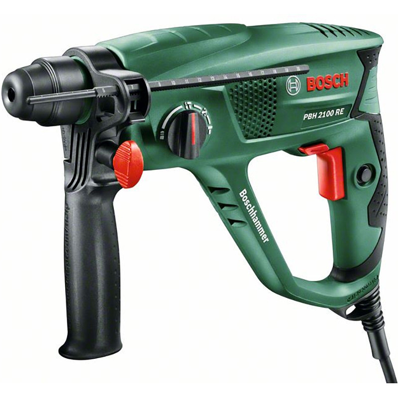 Juhtmega puurvasar PBH 2100 RE sobib ideaalselt betooni, müüritise, keraamiliste plaatide, puidu ja metalli puurimis-, löökpuurimis- või meiseldamistööde hõlpsaks tegemiseks. Selle 550 W mootor paneb tööle Boschi pneumaatilise löögimehhanismi, mis rakendab 1,7-džaulist löögijõudu. Tööriista SDS plusi padrun võimaldab tarvikuid kiiresti ja kindlalt ilma võtmeta vahetada. 36 meisliasendiga Vario Locki meiseldamisfunktsioon tagab alati optimaalse töönurga. Seadmel on ka funktsioon Bosch Electronic Speed Control, mis tagab survetundliku päästiku abil materjali jaoks õige kiiruse.