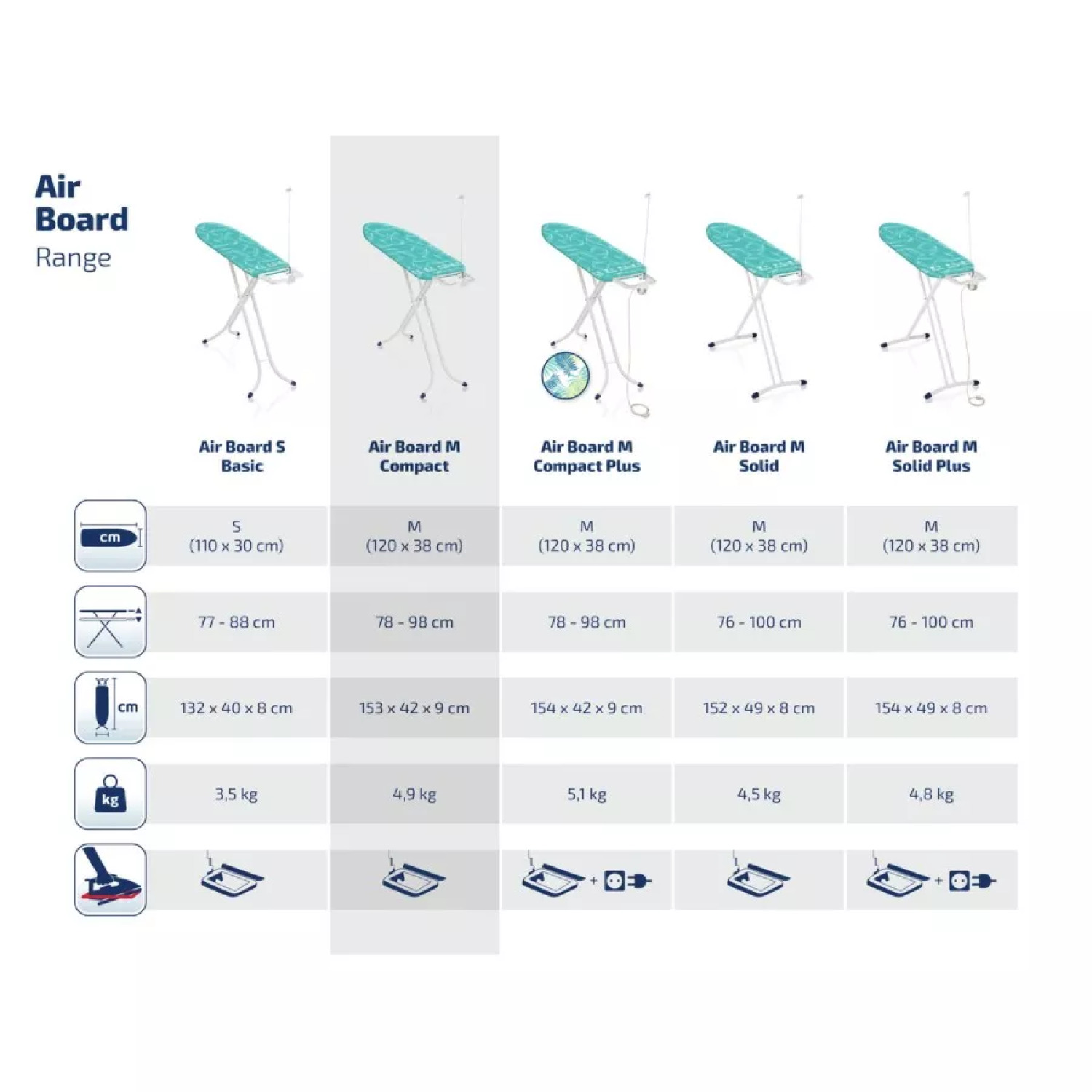 Triikimislaua mõõdud: 120 x 38 cm. Uus, optimeeritud triikimiskogemus. Laud on äärmiselt kerge - oluliselt kergem kui tavapärased plast- ja terasest lauad. Triikimisala on valmistatud EPP-st, mis on äärmiselt kerge ja vastupidav plastmaterjal, mis on venitatud spetsiaalse tehnoloogia abil, mis võimaldab sellel lauajal olla vähemalt 25% kergem kui sarnased lauad! Kergemat lauda on palju lihtsam käsitseda, paigutada ja manööverdada, eriti inimestele, kelle liikumisvõime on piiratud. Laud sisaldab ka ainulaadset termoreflektiivset katet, mis peegeldab soojust ja auru, vähendades triikimise aega kuni 33%. Fikseeritud raua hoidja raua paigutamiseks koos kaablihoidjaga. Triikimislaud on reguleeritava kõrgusega: kuni 95 cm. Kaal: 4 kg.