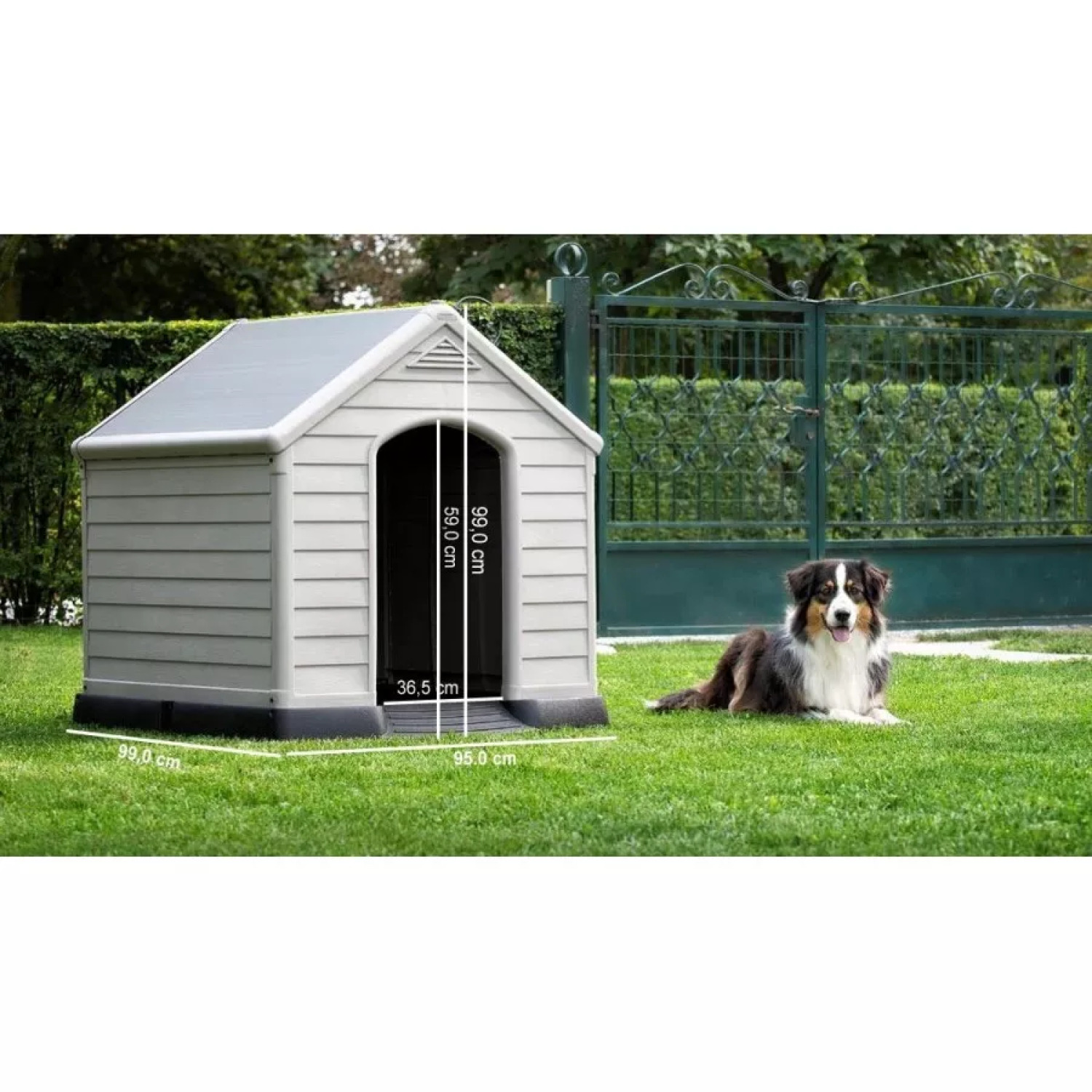 Koeramaja, mille vaatamine toob rõõmu ja kus teie lemmiklooma viibimine on mugav. Valmistatud kvaliteetsest plastikust, mis talub erinevaid ilmastikutingimusi. Kaasaegse disaini ja tõstetud põranda tõttu püsib teie koer kuiv ja soe ning ruumikas sisemus võimaldab tal vabalt liikuda.