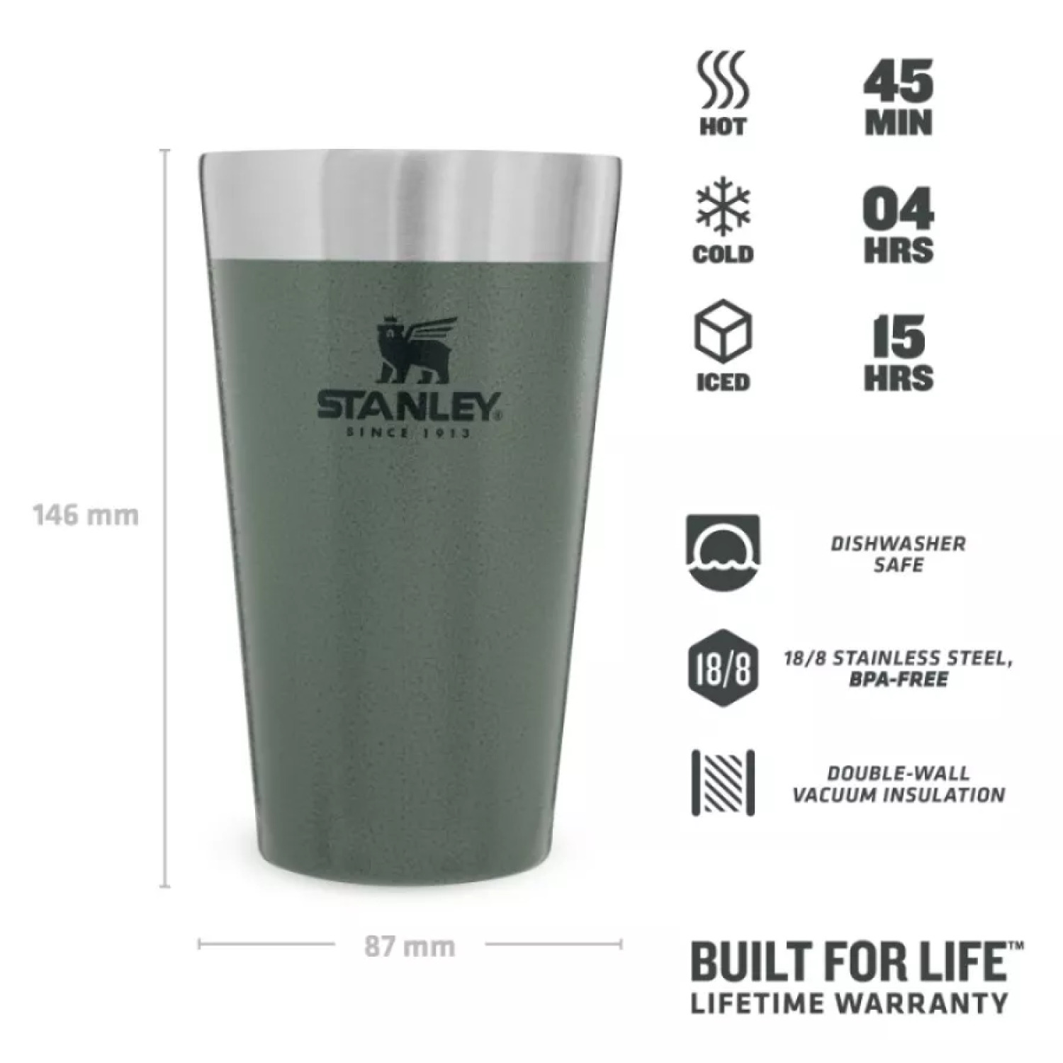Õllekruus Stanley® Adventure The Stacking Beer Pint 0,47L on ideaalne kaaslane teie jookide nautimiseks, olgu need siis kuumad või külmad. Tänu selle kvaliteetsest roostevabast terasest valmistatud konstruktsioonile ja vakuumisoleeritud kahe seinaga disainile hoiab see teie joogid ideaalilähedases temperatuuris.