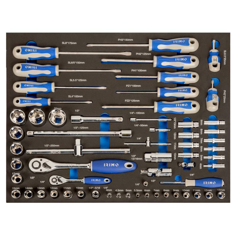 1/4" ja 1/2" padrunvõtmete ja kruvikeerajate kmpl 60 osa 3/3 vahtaluses IFF1A004 IRIMO