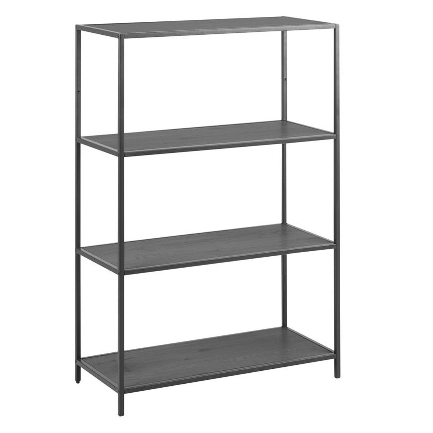 Riiul SEAFORD 77x35xH114cm, 3x, riiulid: must melamiin, jämeda pulbervärviga, matt must