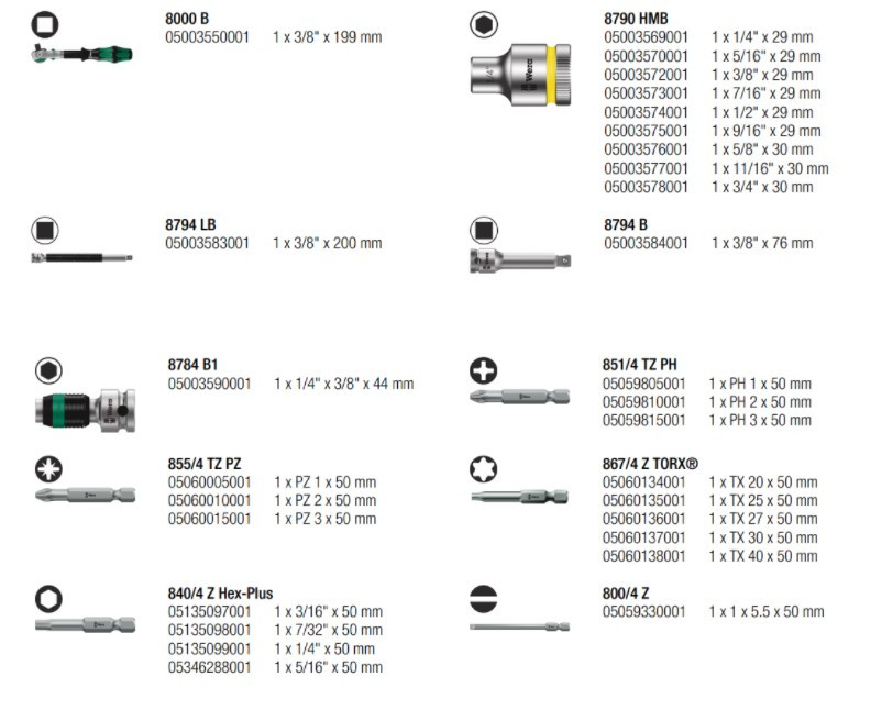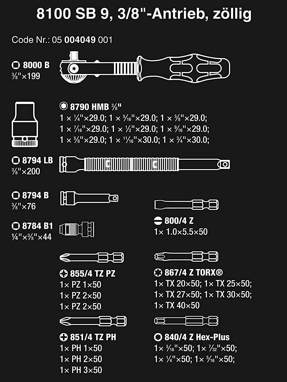 Padrunite ja otsiukte komplekt - 3/8 a8100 SB 9 Zyklop Speed Wera