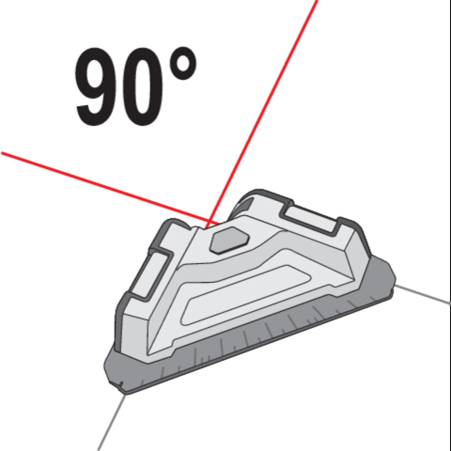 • emiteerib kaks punast, hästi nähtavat joont, määrates täpselt 90° nurga