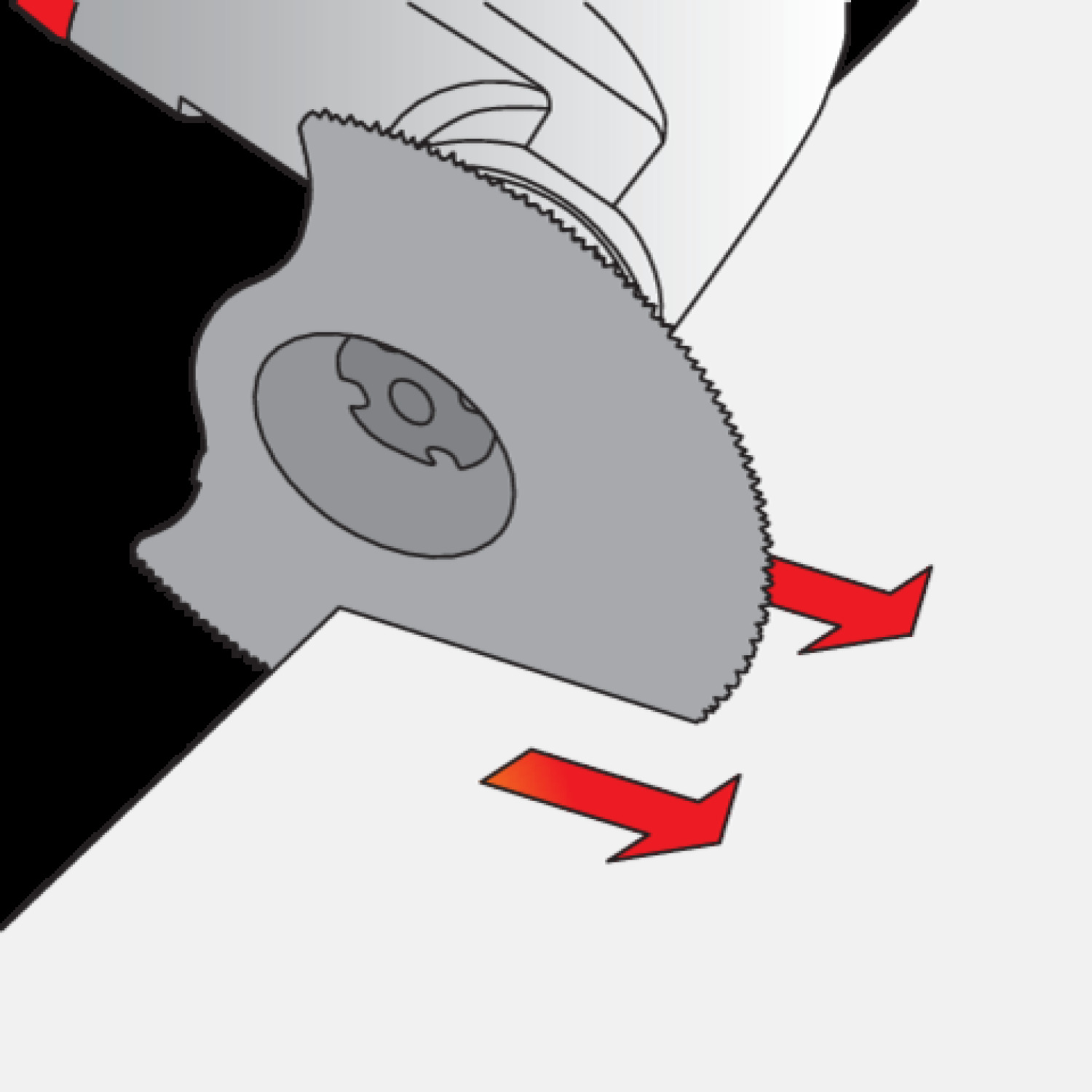 Лезвие BiM-TiN (биметаллическая сталь с покрытием из титановый нитрид) идеально подходит для продольной резки листового металла. Благодаря большой боковой поверхности, лезвие позволяет выполнять резку вручную, вне зависимости от опыта работы с мультитулами. Длина лезвия обеспечивает возможность возвратно-поступательного движения для ускорения процесса резки.
