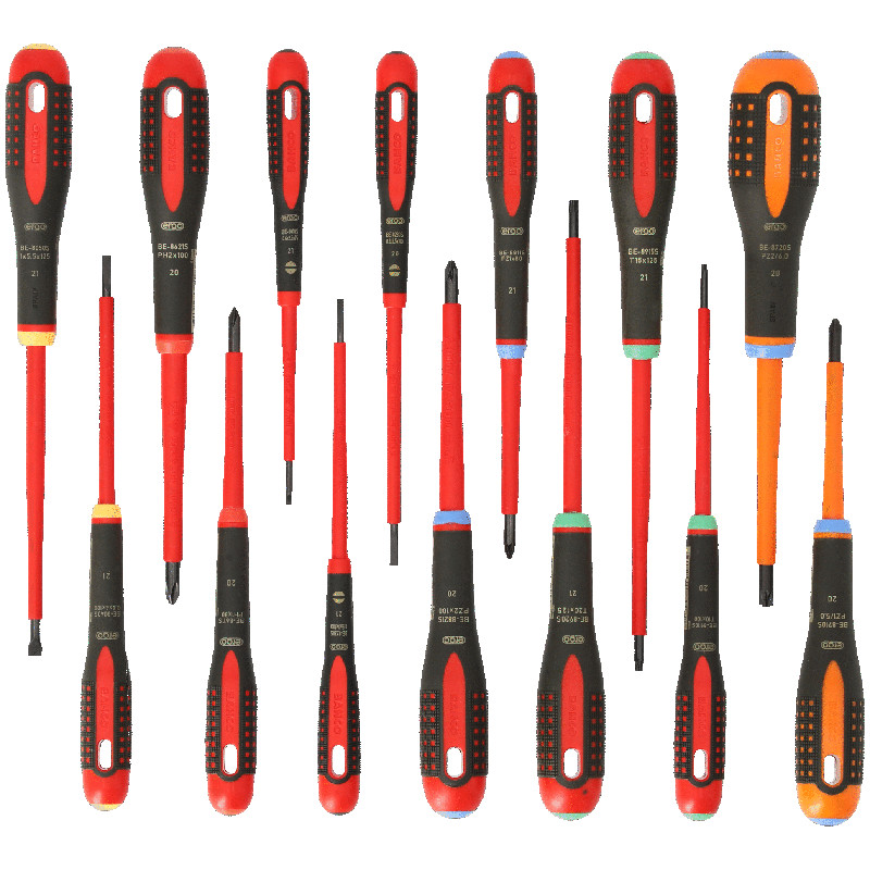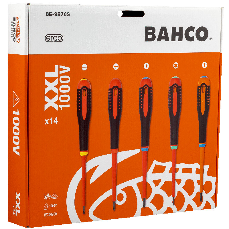 XXL Elektriline kruvikeeraja komplekt ERGO™ 14tk - SL2.5/3.0/3.5/4.0/5.5; PH1/2; PZ1/2; T10/15/20; Kombi PZ1/SL5, PZ2/SL6, 1000V, VDE, BE-9876S BAHCO