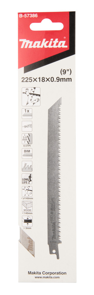 Zobenzāģa asmenis BIM 225X0,9mm 8.5Tpi, 1gab., koks < 140mm, koku zari... B-57386 MAKITA®